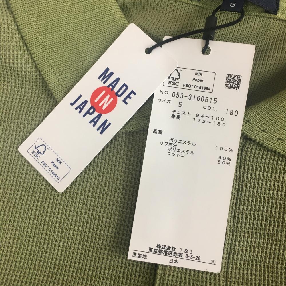 【新品】パーリーゲイツ 半袖ポロシャツ グリーン×白 背面ビッグロゴ 日本製 メンズ 5(L) ゴルフウェア PEARLY GATES
