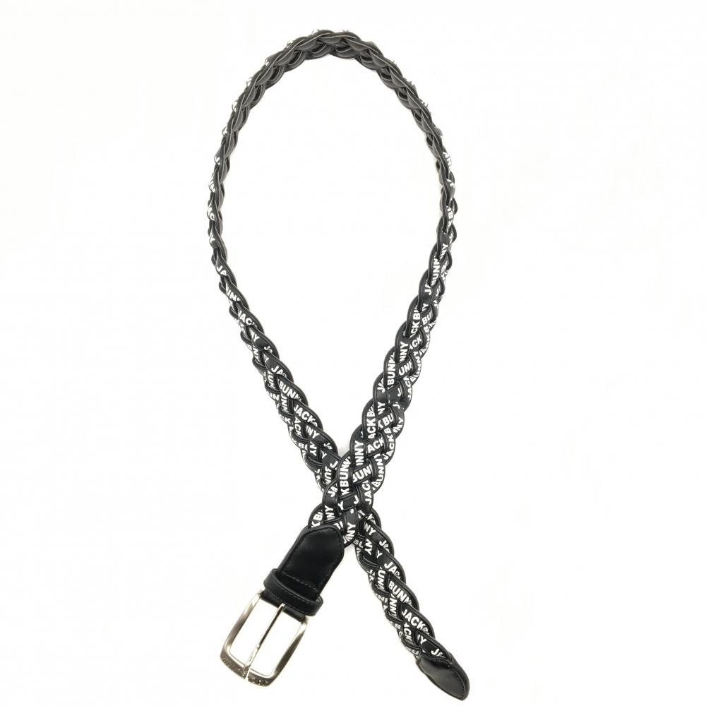 【新品】ジャックバニー 編み込みベルト 黒×白 ロゴ総柄 メンズ ゴルフウェア Jack Bunny