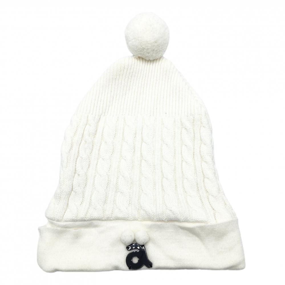 【超美品】アルチビオ ニット帽 白×黒 一部ケーブル編み ボンボン付 ゴルフウェア archivio