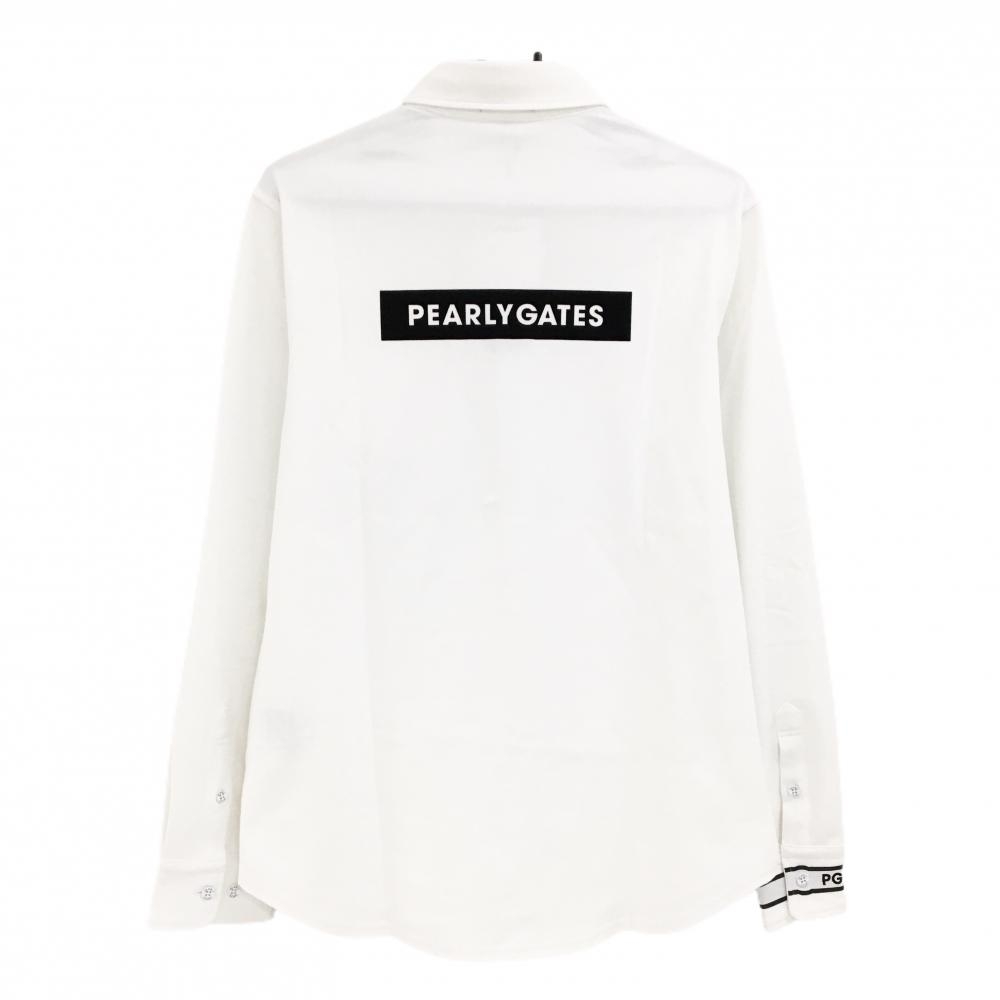 【新品】パーリーゲイツ 長袖ポロシャツ 白×ネイビー 胸ポケット ボタンダウン メンズ 5(L) ゴルフウェア PEARLY GATES
