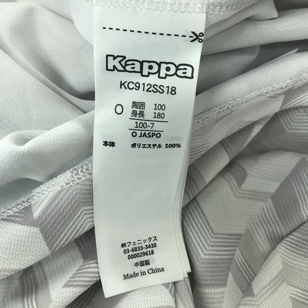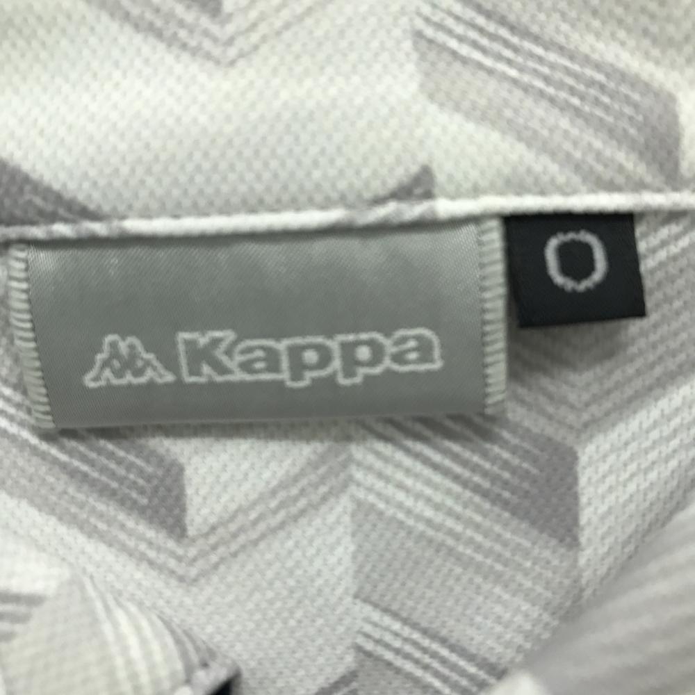 【超美品】カッパ 半袖ポロシャツ 白×ライトグレー ヘリンボーン風 ロゴ刺しゅう メンズ 0(XL) ゴルフウェア Kappa