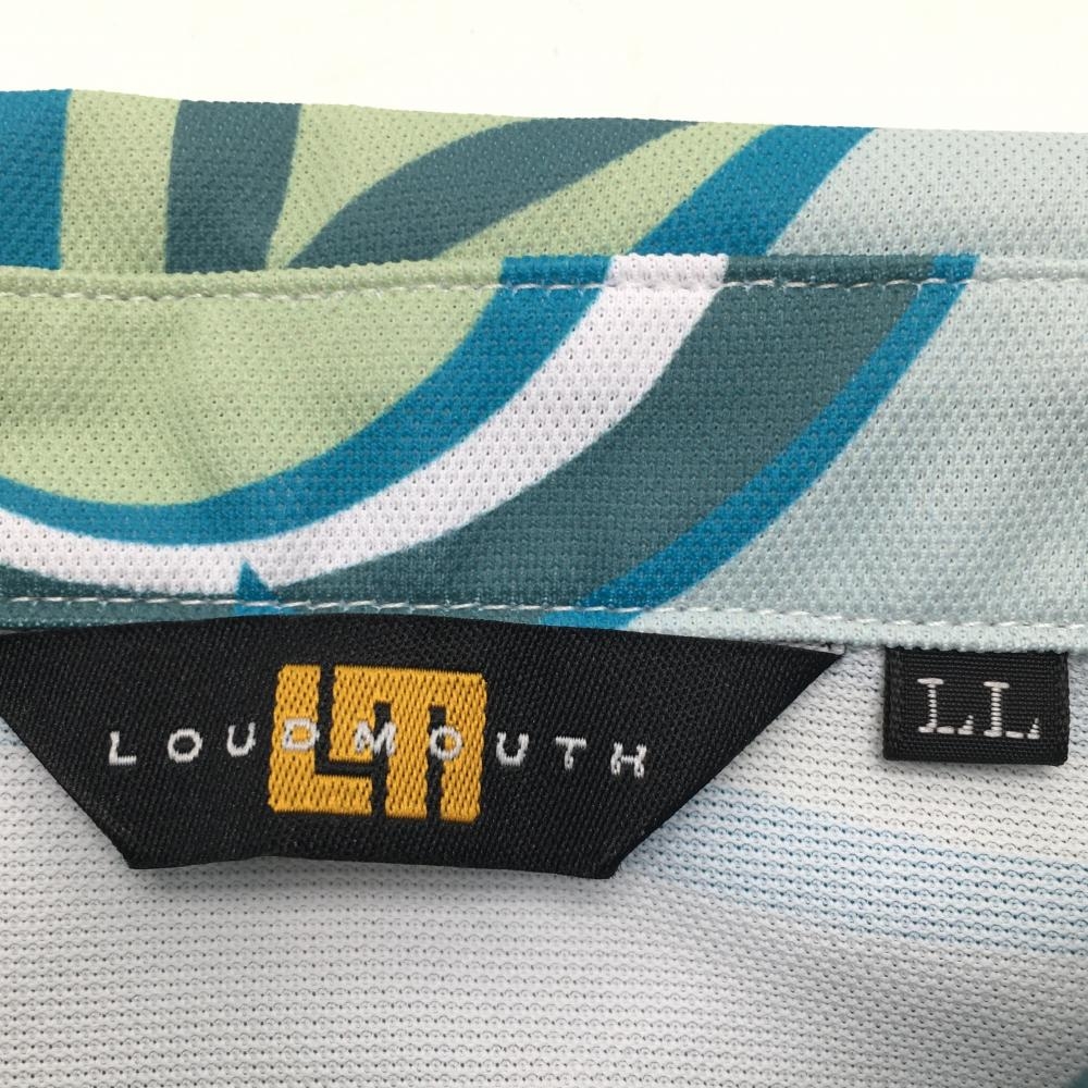 【新品】ラウドマウス 半袖ポロシャツ ライトブルー×ライトグリーン 総柄 ジャガデリック柄 レディース LL ゴルフウェア LOUDMOUTH