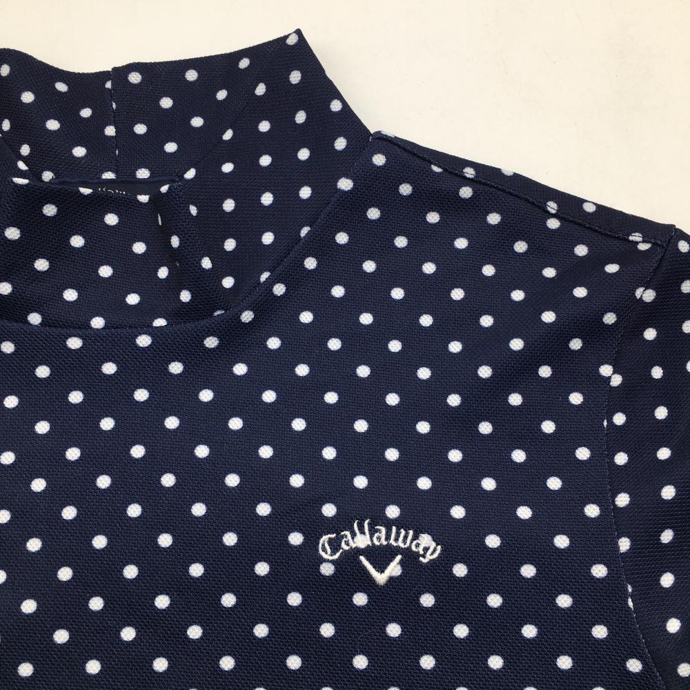 【超美品】キャロウェイ 半袖ハイネックシャツ ネイビー×白 ドット柄 ロゴ刺しゅう レディース LL ゴルフウェア Callaway