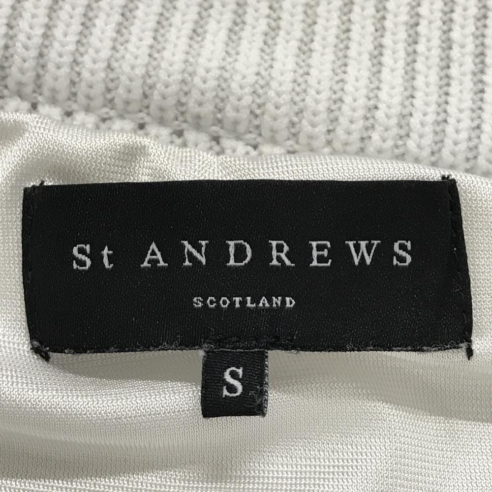 【美品】セントアンドリュース ニットジャケット 白 袖ダイヤ柄編み 裏地付 レディース S ゴルフウェア St ANDREWS