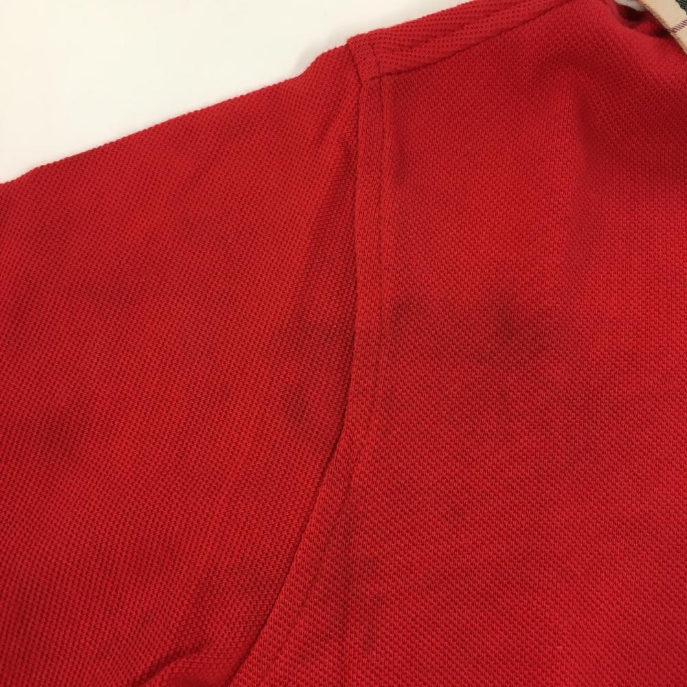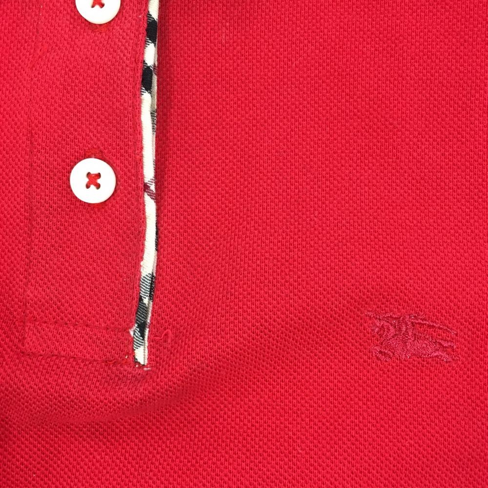 バーバリー 半袖ポロシャツ レッド×ベージュ 襟チェック レディース S ゴルフウェア BURBERRY GOLF