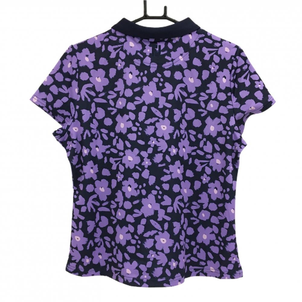 【超美品】フットジョイ 半袖ポロシャツ ネイビー×パープル 花柄 ロゴ刺しゅう レディース XL ゴルフウェア FootJoy