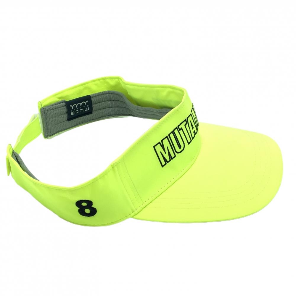 【美品】ムータマリン サンバイザー 蛍光イエロー ロゴ刺しゅう ゴルフウェア muta
