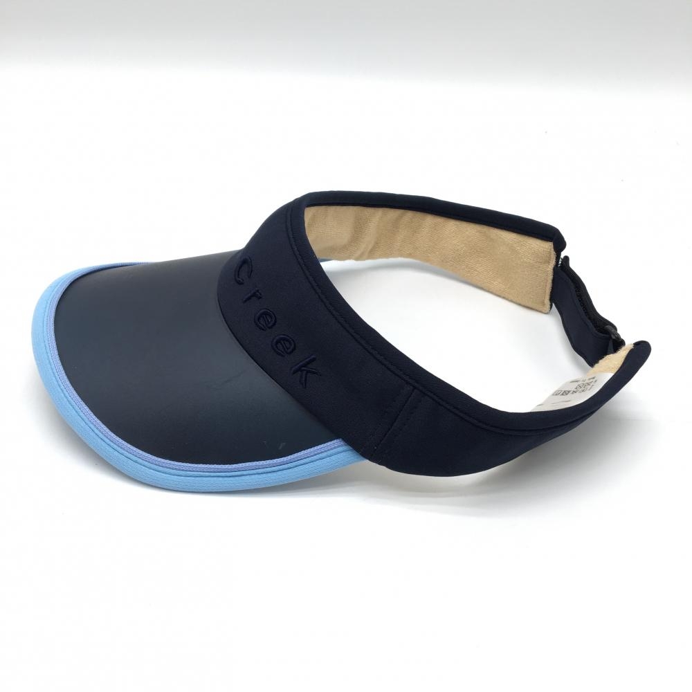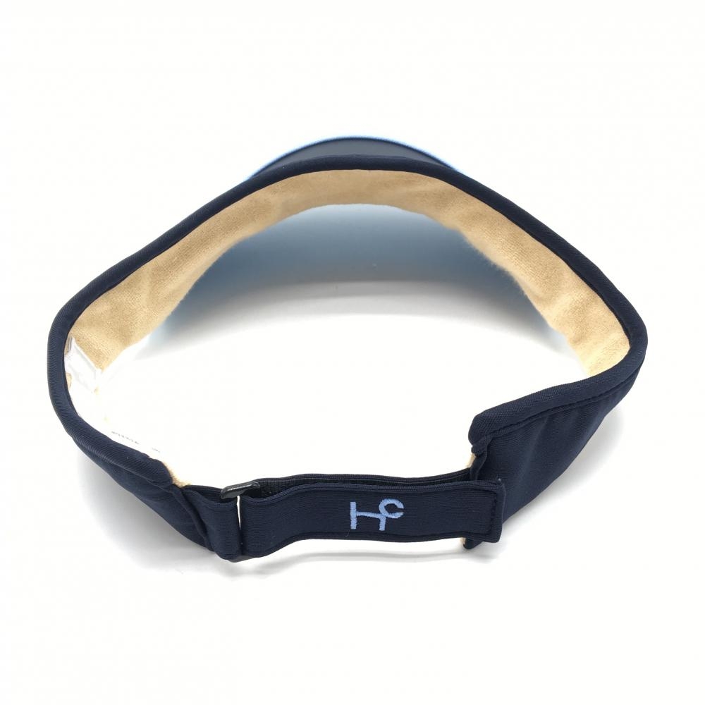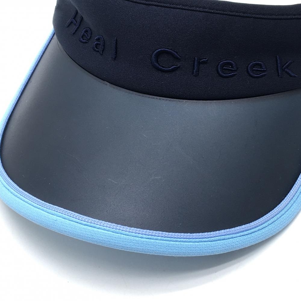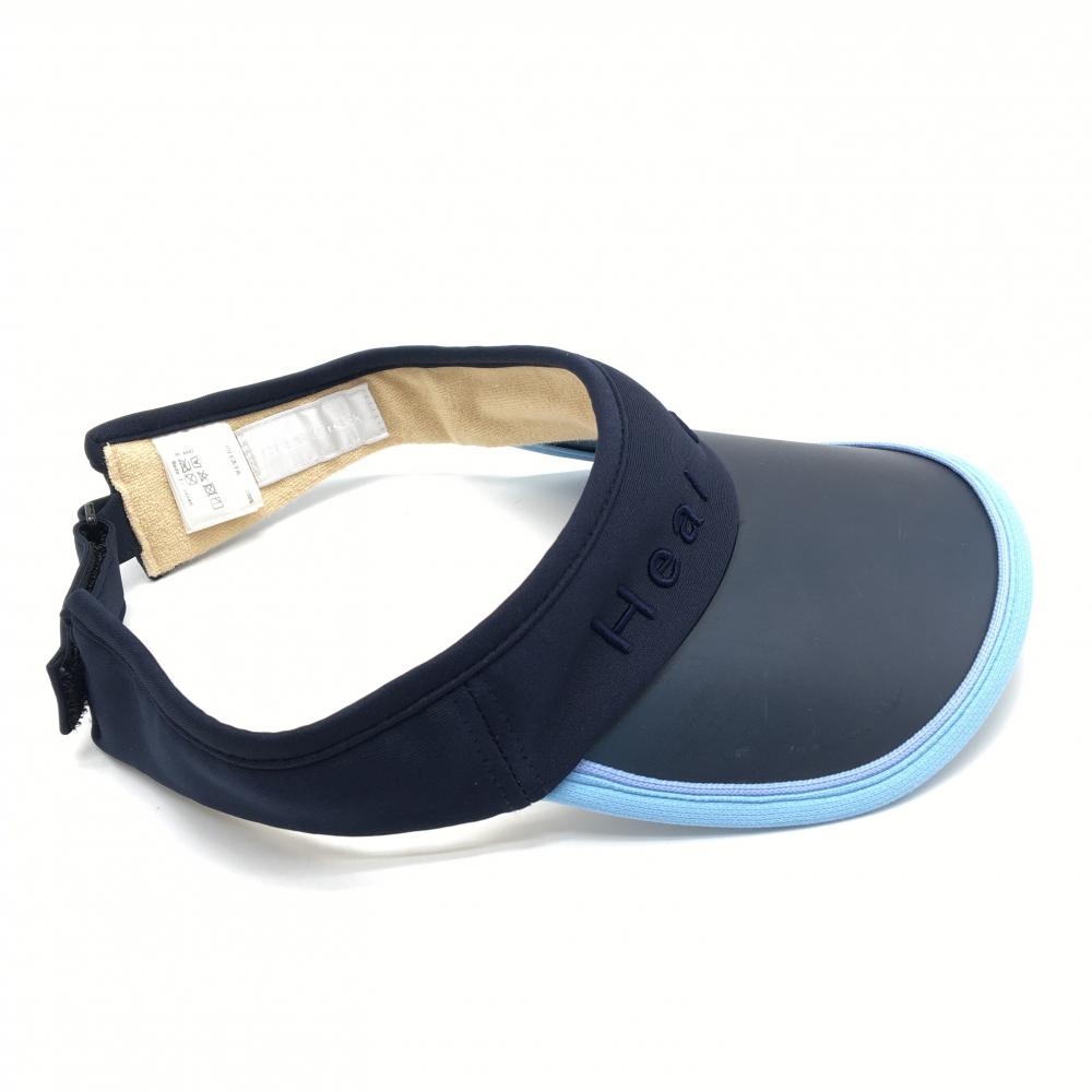 【美品】ヒールクリーク サンバイザー ネイビー×ライトブルー ロゴ刺しゅう 40 ゴルフウェア Heal Creek