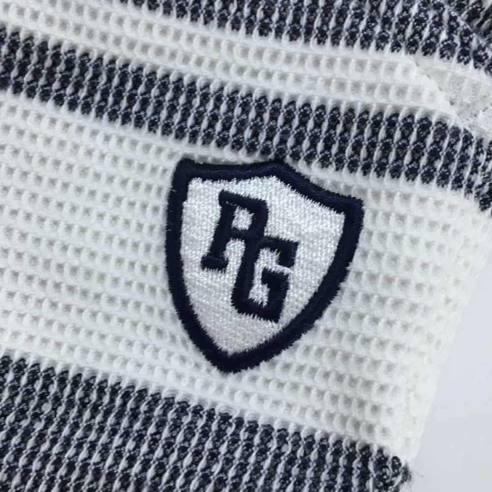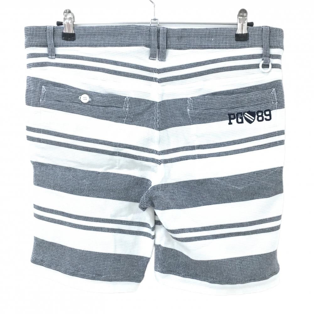 【美品】パーリーゲイツ ハーフパンツ 白×ネイビー系 ボーダー 織生地 ポケット裏ニコちゃん メンズ 6(XL) ゴルフウェア PEARLY GATES