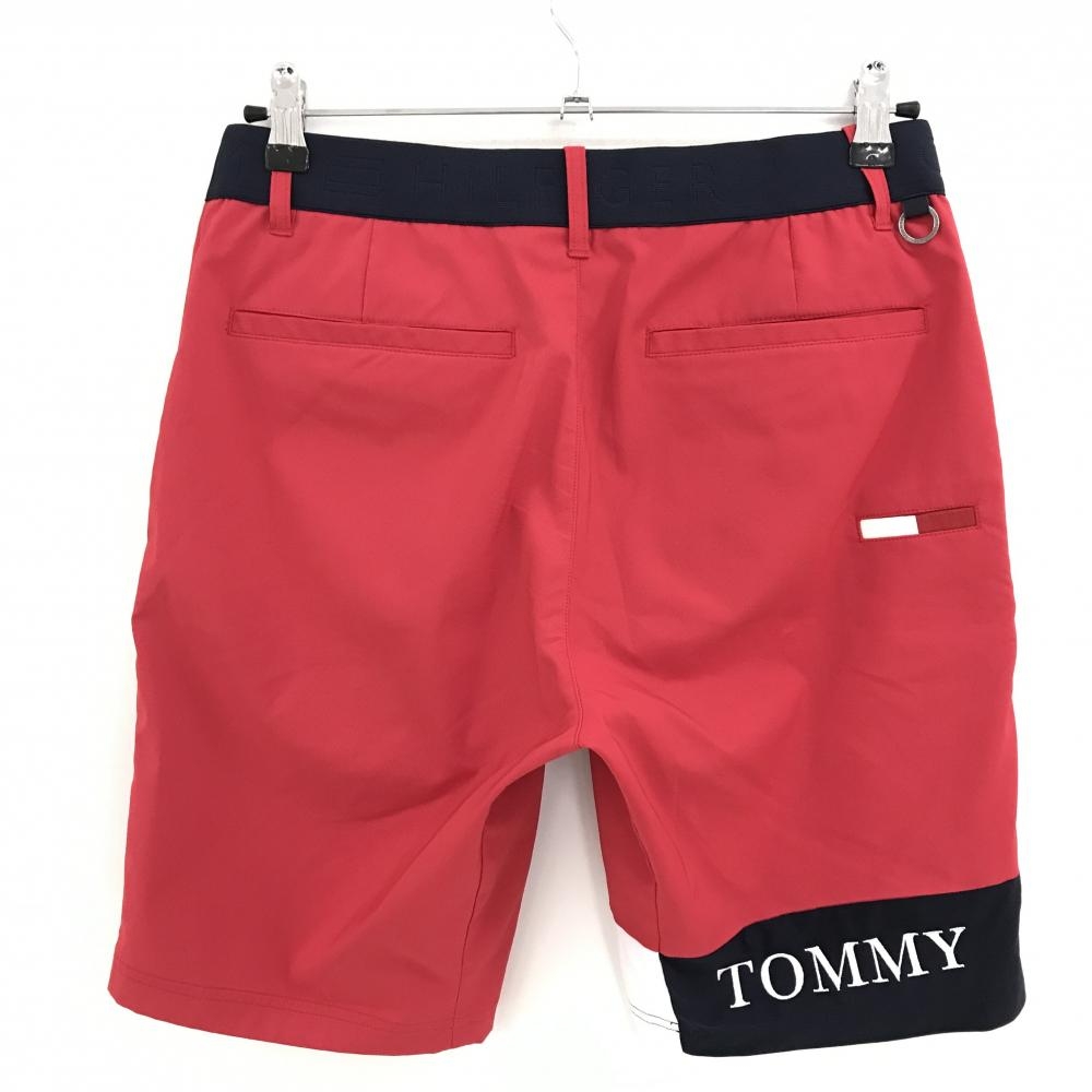 【超美品】トミーヒルフィガーゴルフ ハーフパンツ レッド×ネイビー ロゴ刺しゅう メンズ L ゴルフウェア Tommy Hilfiger Golf