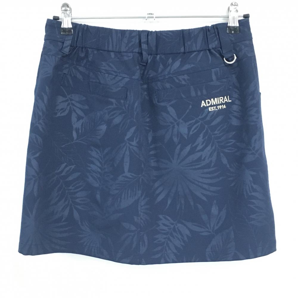 【超美品】アドミラル スカート ネイビー リーフ柄地模様 ロゴ刺しゅう レディース L ゴルフウェア Admiral