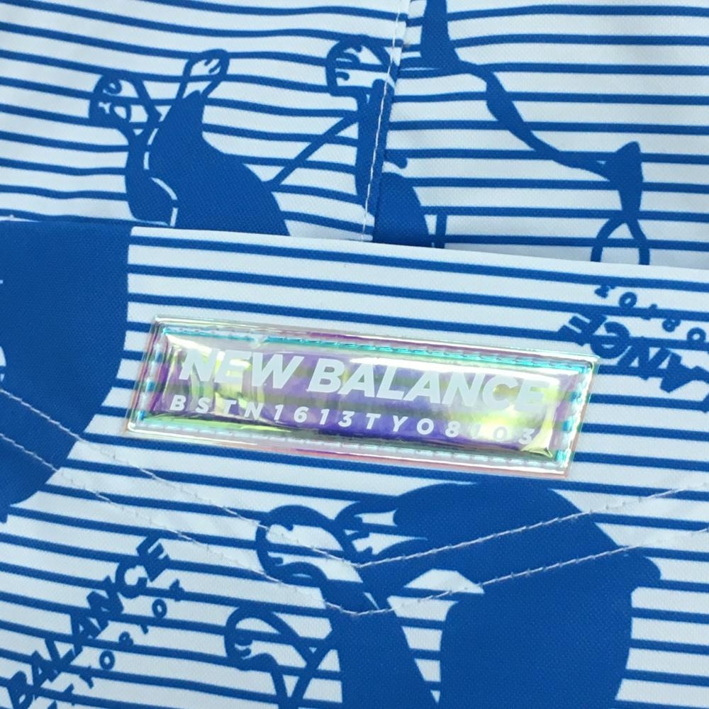 【超美品】ニューバランスゴルフ スカート 白×ブルー イヌ総柄 ボーダー レディース 2(L) ゴルフウェア New Balance