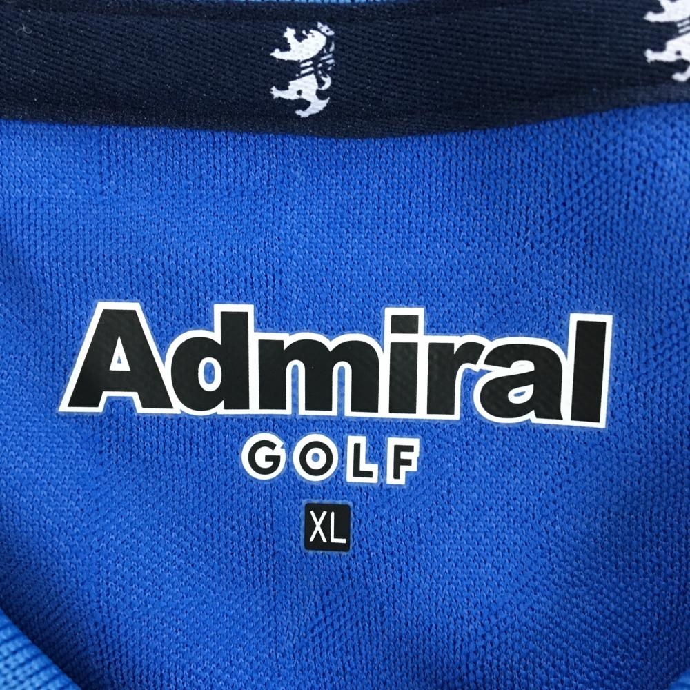 【美品】アドミラル 半袖ポロシャツ ブルー 総柄織生地 ロゴ メンズ XL ゴルフウェア Admiral