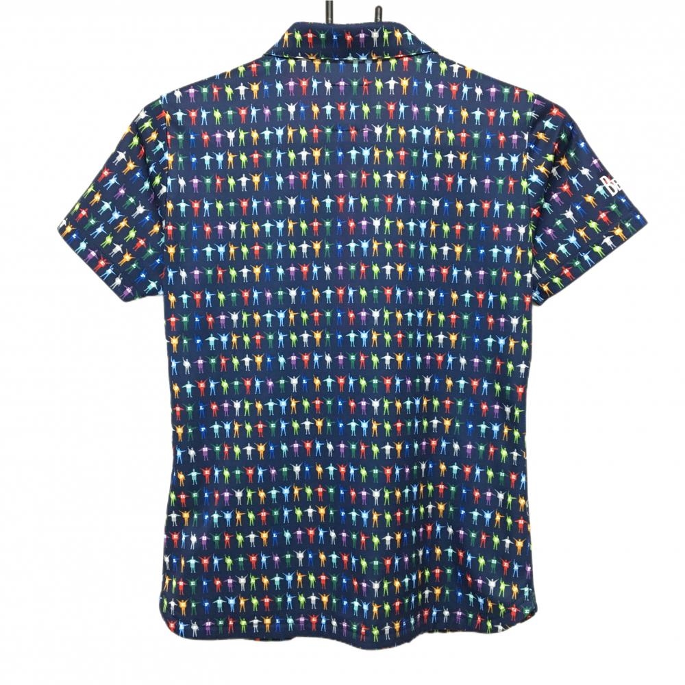 【美品】アドミラル 半袖ポロシャツ ネイビー×マルチカラー 総柄 レディース M ゴルフウェア Admiral