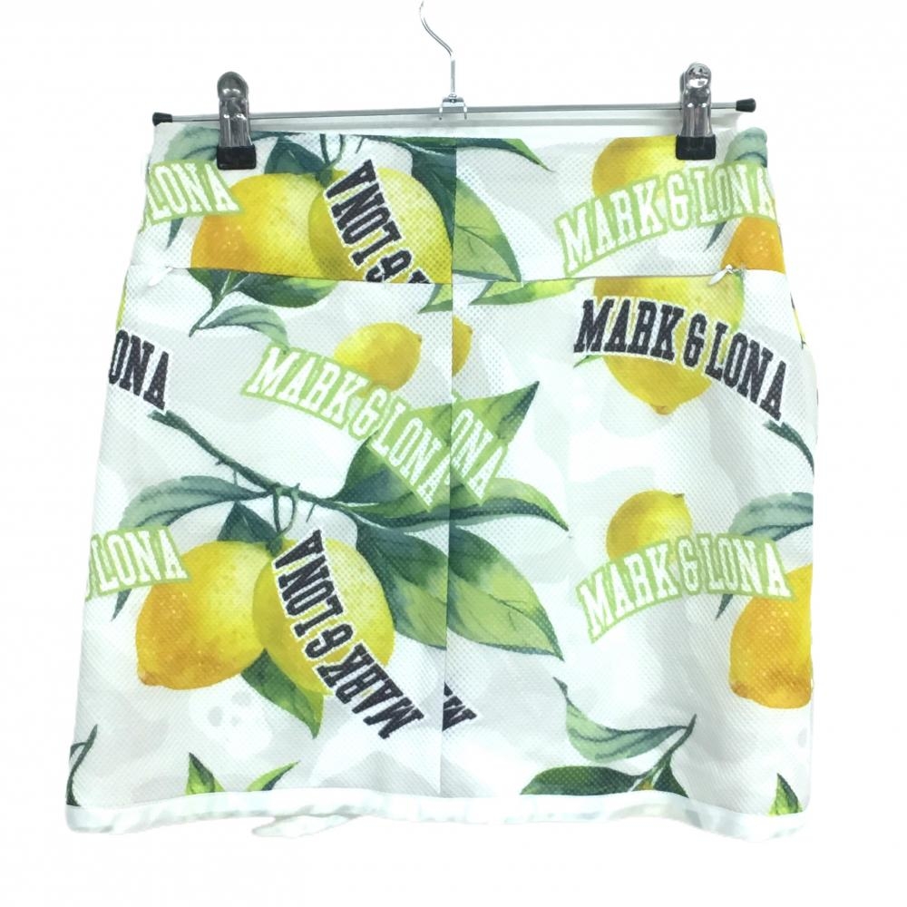 マークアンドロナ 巻きスカート 白×イエロー×グリーン レモン柄 レディース ゴルフウェア MARK&LONA