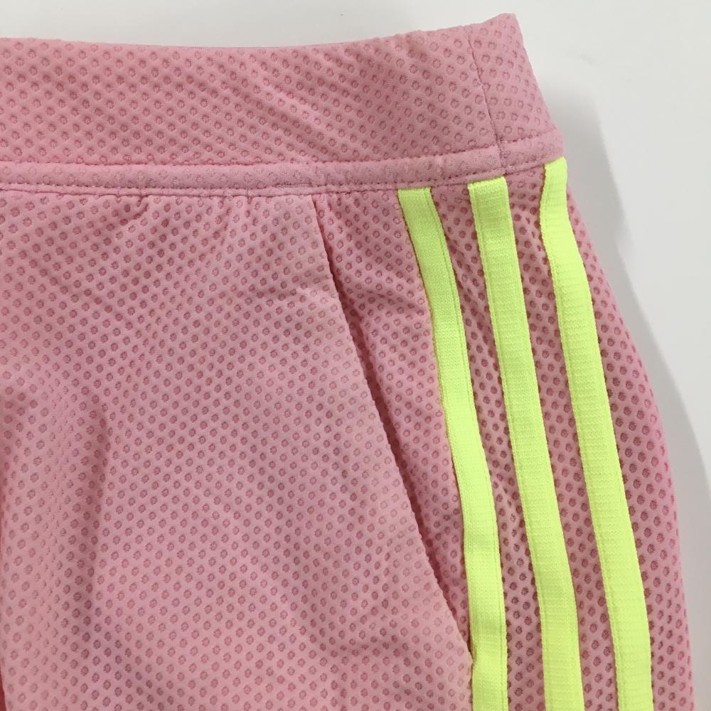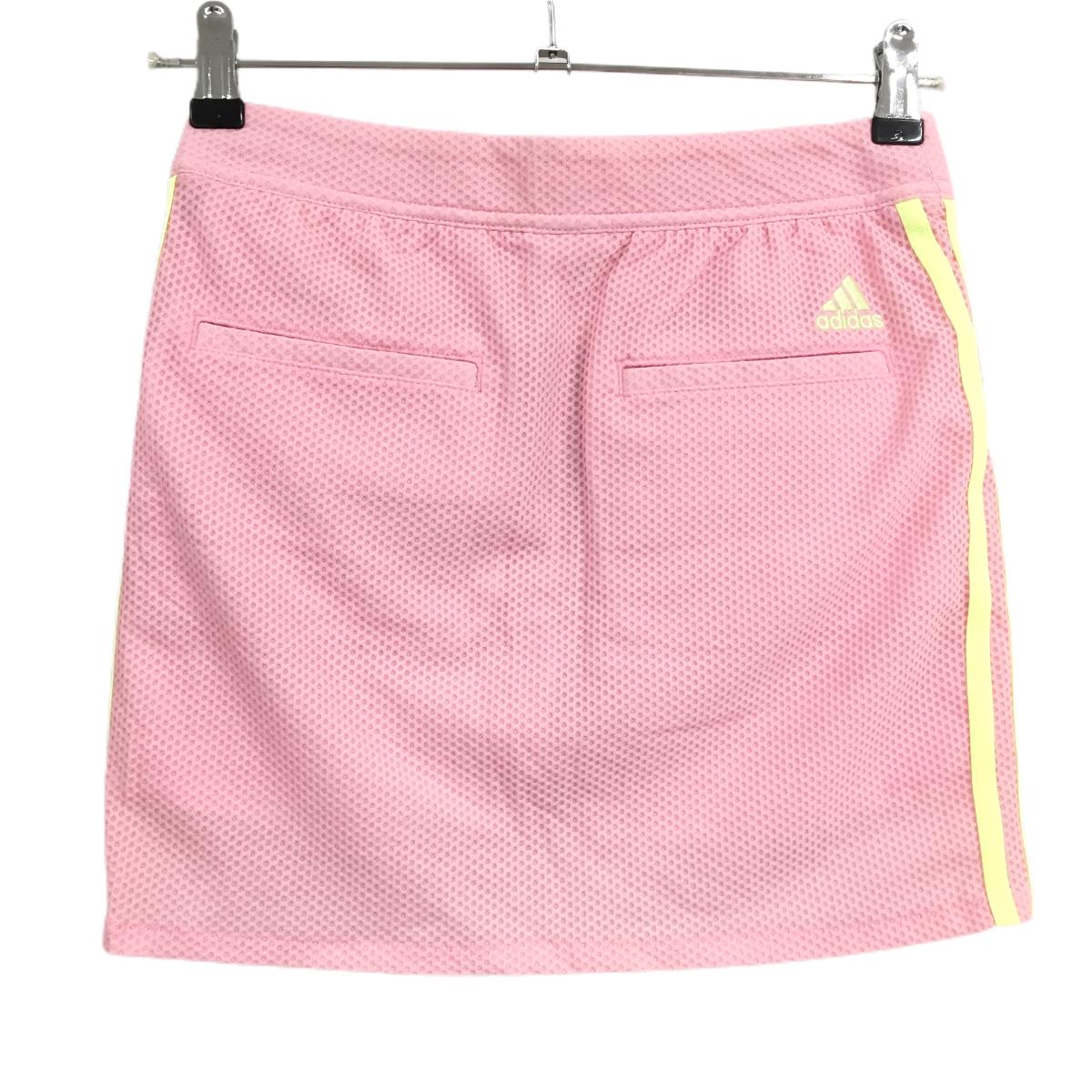 【超美品】アディダス スカート ピンク×イエロー メッシュ調 サイド3ライン バックロゴ レディース M ゴルフウェア adidas
