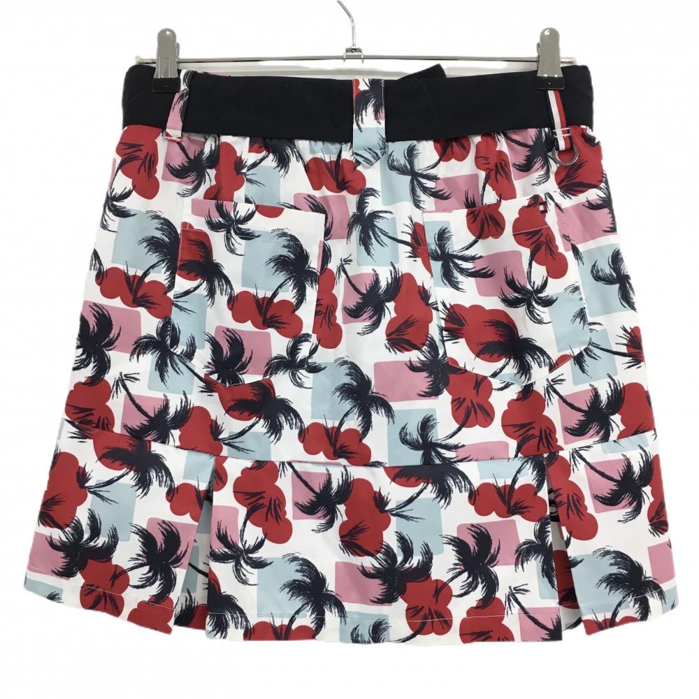 【超美品】トミーヒルフィガーゴルフ スカート 白×ネイビー×レッド 総柄 ヤシの木 レディース L ゴルフウェア Tommy Hilfiger Golf