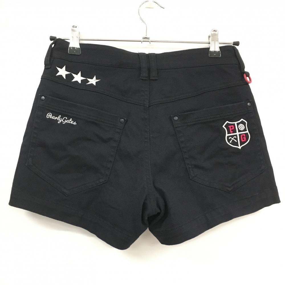 【美品】パーリーゲイツ ショートパンツ 黒 無地 ロゴ刺しゅう レディース 00(XS) ゴルフウェア PEARLY GATES