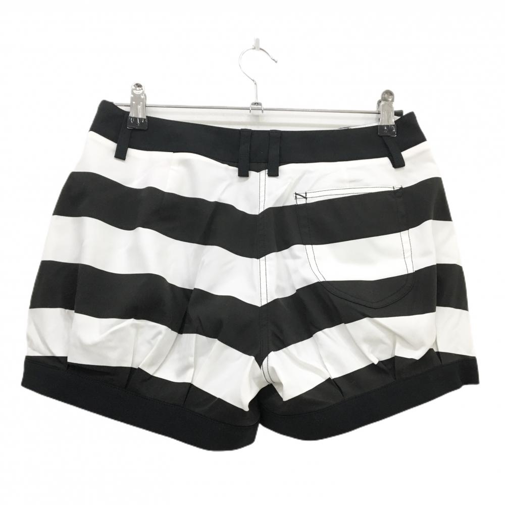 【超美品】プーマ ショートパンツ 黒×白 ボーダー ロゴ刺しゅう レディース L ゴルフウェア PUMA