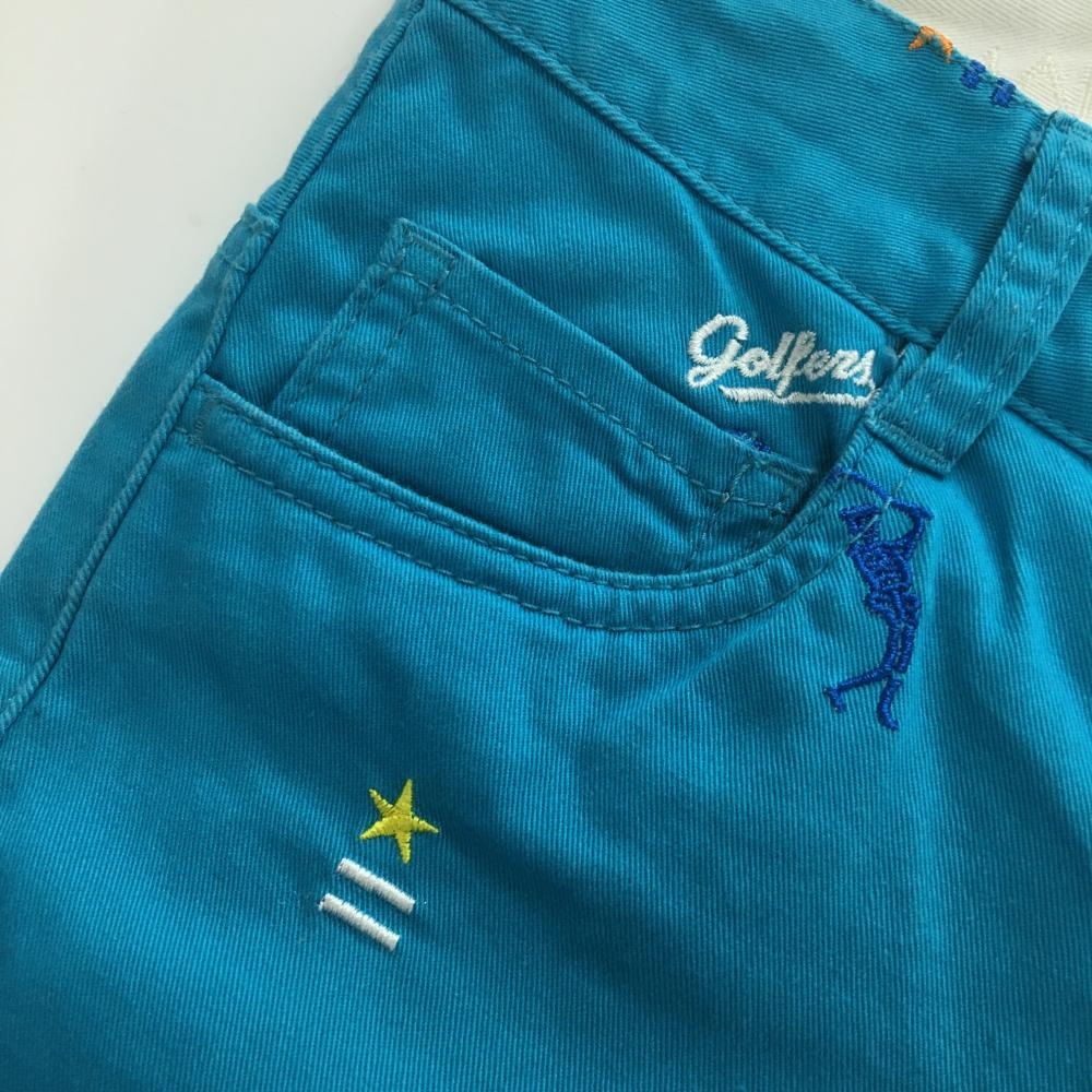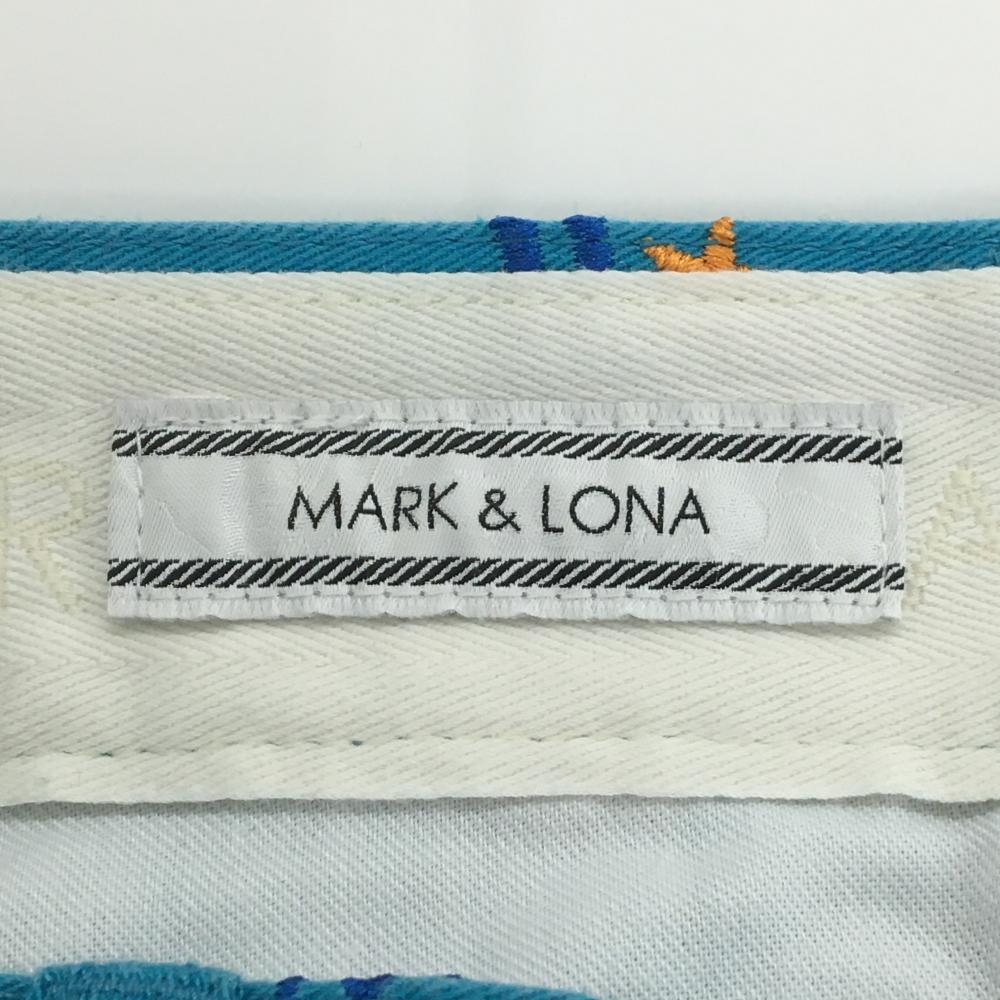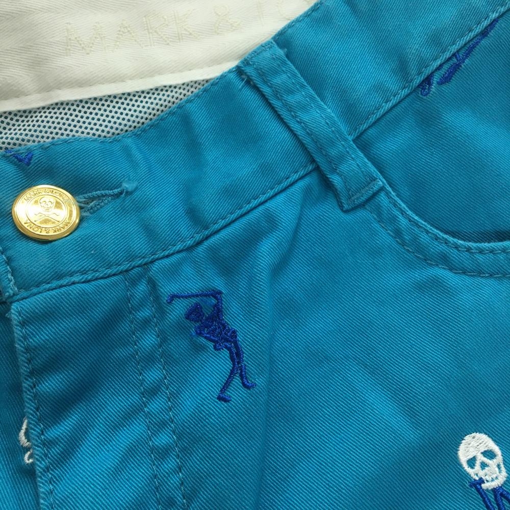 マークアンドロナ カーゴパンツ ライトブルー×白 総柄刺しゅう ゴルファースカル レディース M ゴルフウェア MARK&LONA