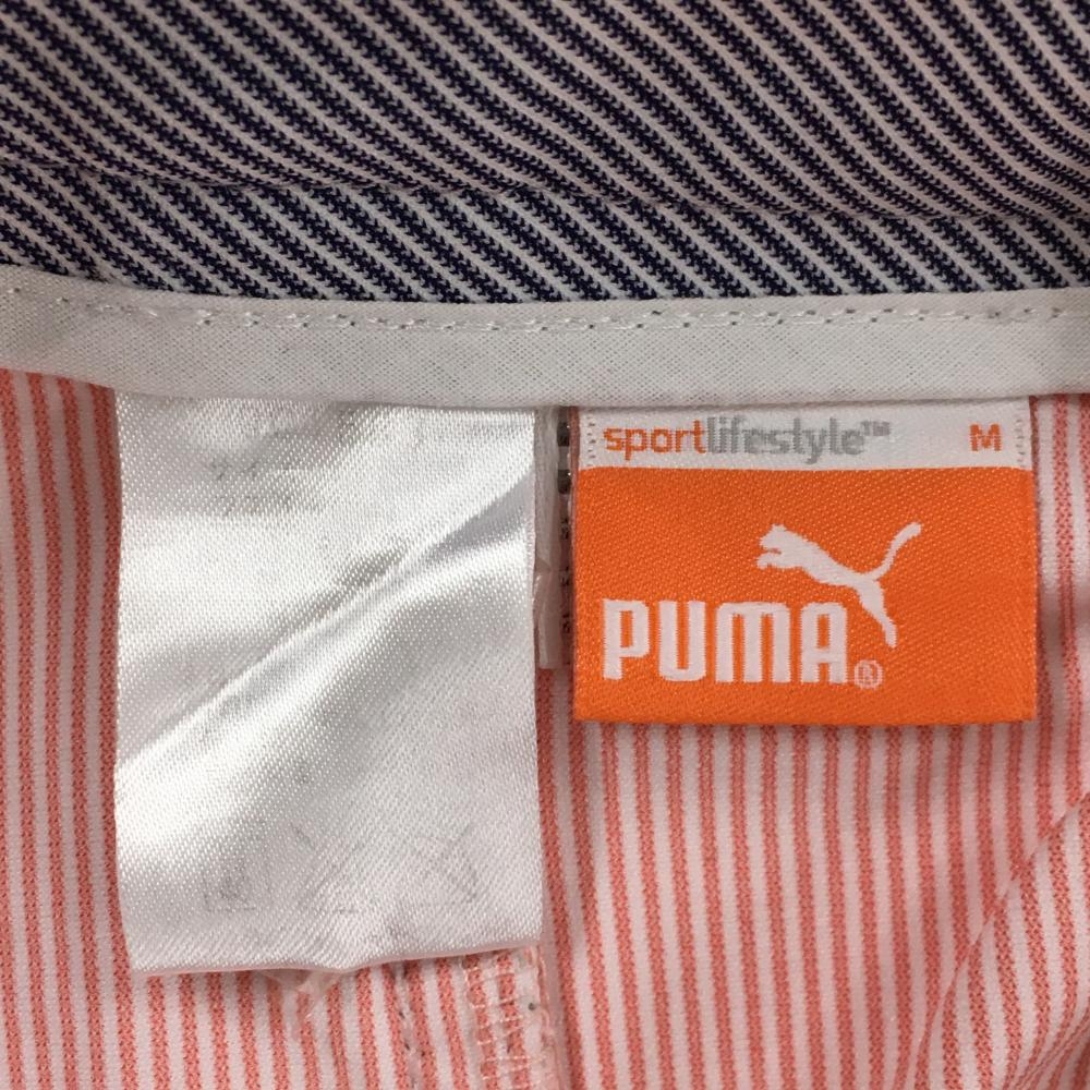 プーマ ショートパンツ サーモンピンク×白 ストライプ ロゴ刺しゅう レディース M ゴルフウェア PUMA