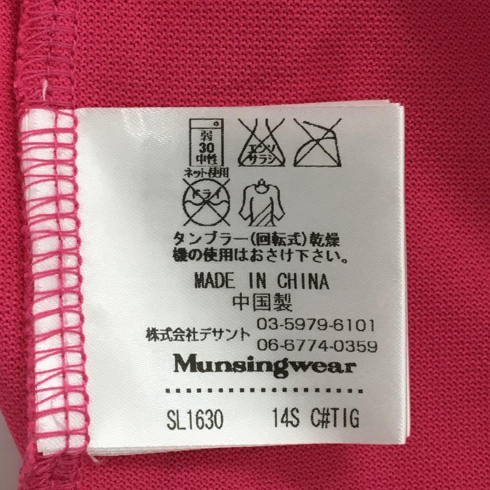 【超美品】マンシングウェア 半袖ポロシャツ ピンク×白 ペンギンワッペン 星条旗 レディース LL ゴルフウェア Munsingwear