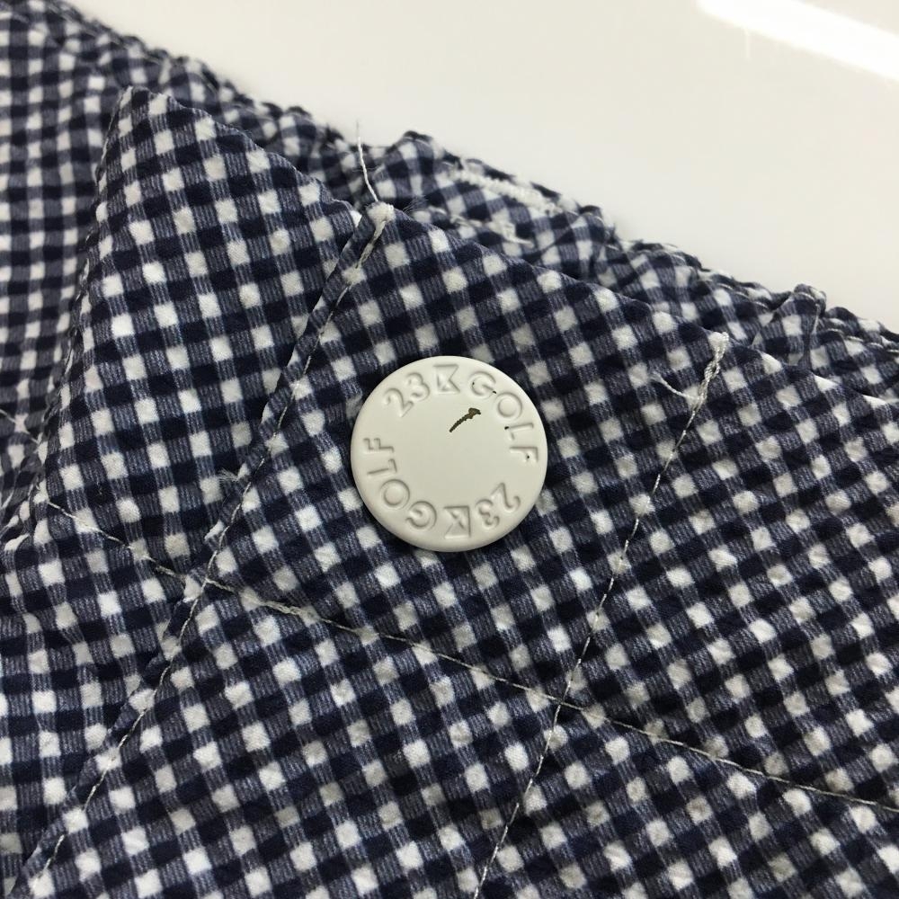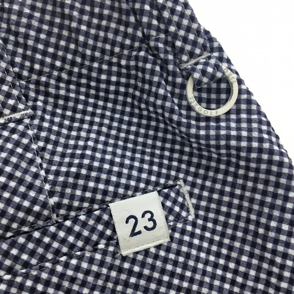 23区ゴルフ 七分丈パンツ ネイビー×白 ギンガムチェック サッカー生地 レディース I(M) ゴルフウェア 23区
