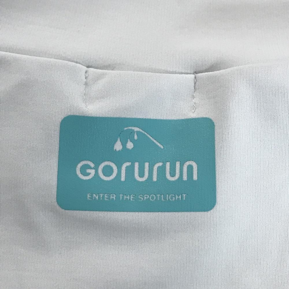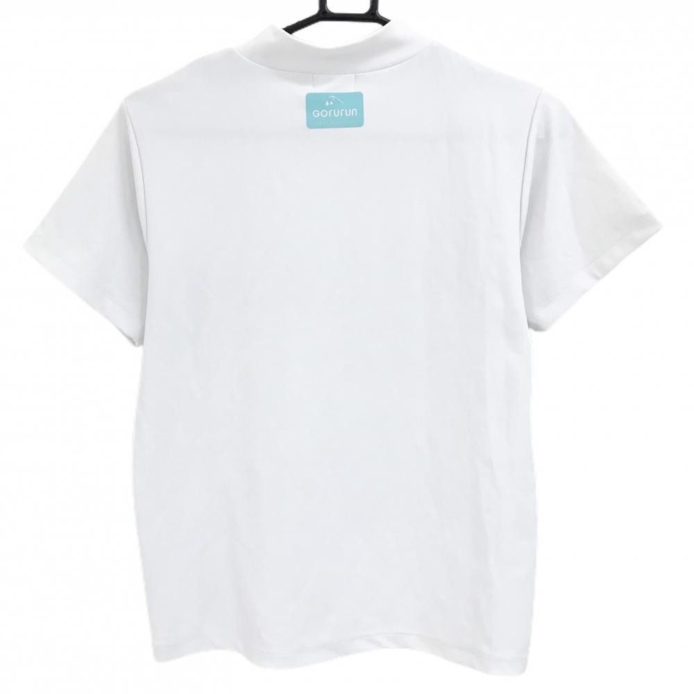 【超美品】ゴルラン 半袖ハイネックシャツ 白×ミントグリーン フロントロゴ ストレッチ レディース M ゴルフウェア Gorurun