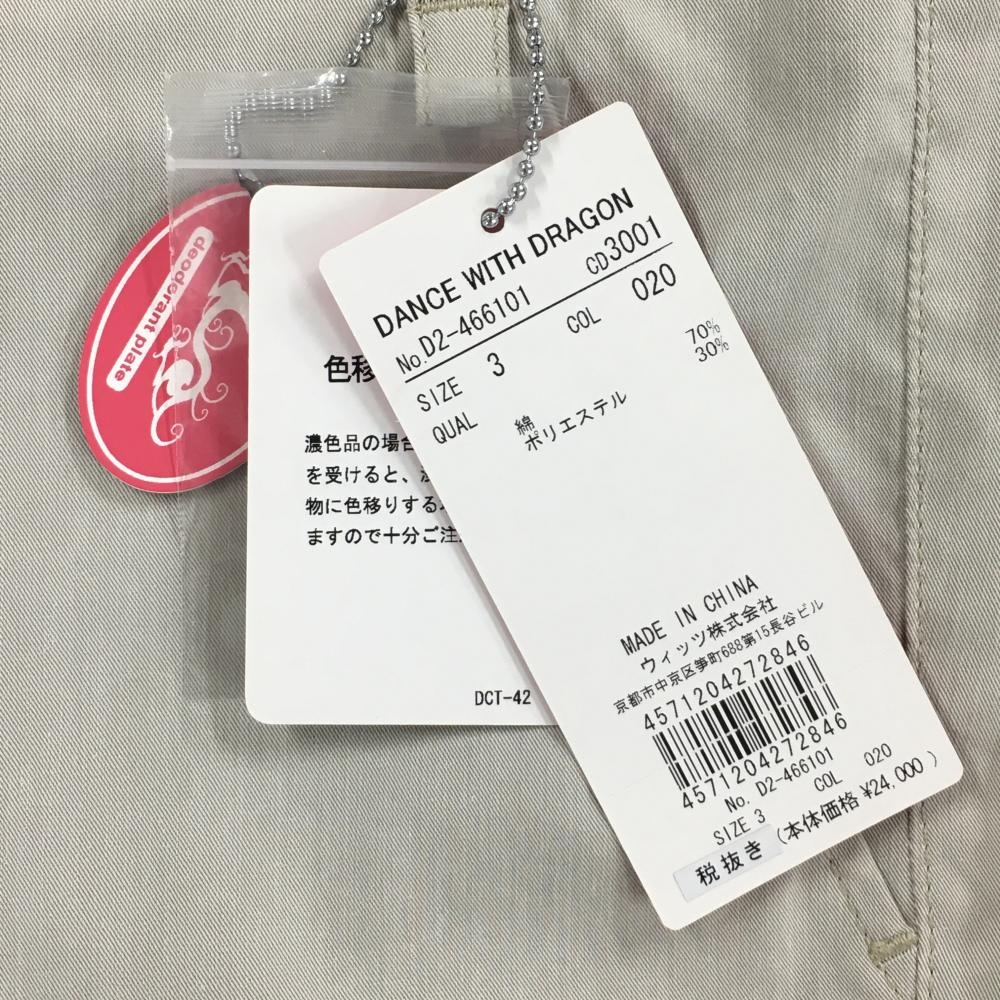 【未使用品】ダンスウィズドラゴン 半端丈パンツ ライトグレー系 バックロゴ刺しゅう レディース 3(L) ゴルフウェア Dance With Dragon