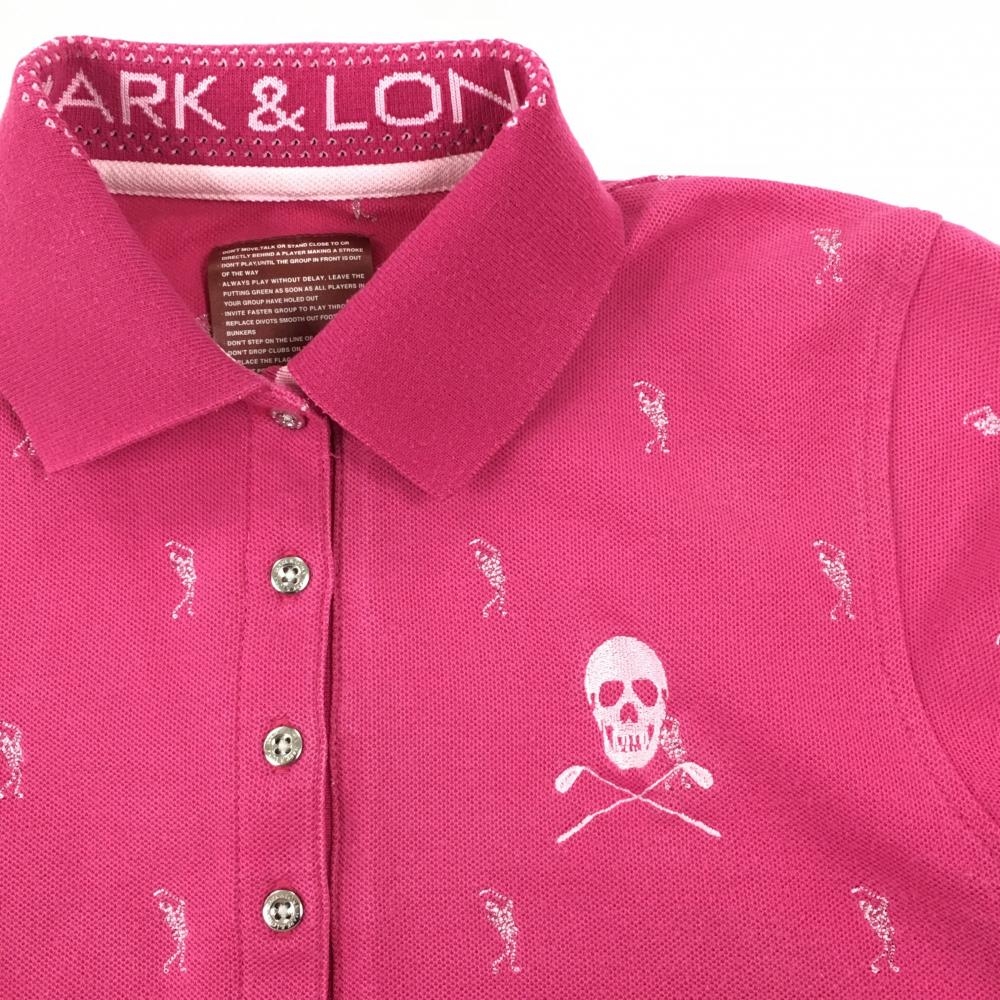 マークアンドロナ 半袖ポロシャツ ピンク×白 スカル総柄 レディース M ゴルフウェア MARK&LONA