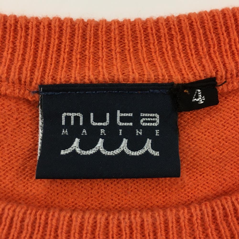 【超美品】ムータマリン セーター オレンジ×イエローオレンジ ロゴ刺しゅう カシミヤ混 メンズ 4(S) ゴルフウェア muta