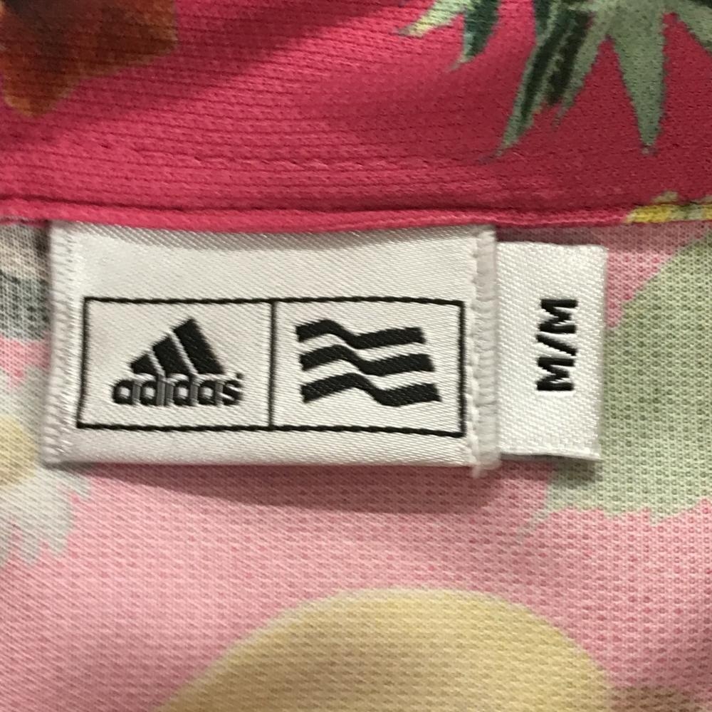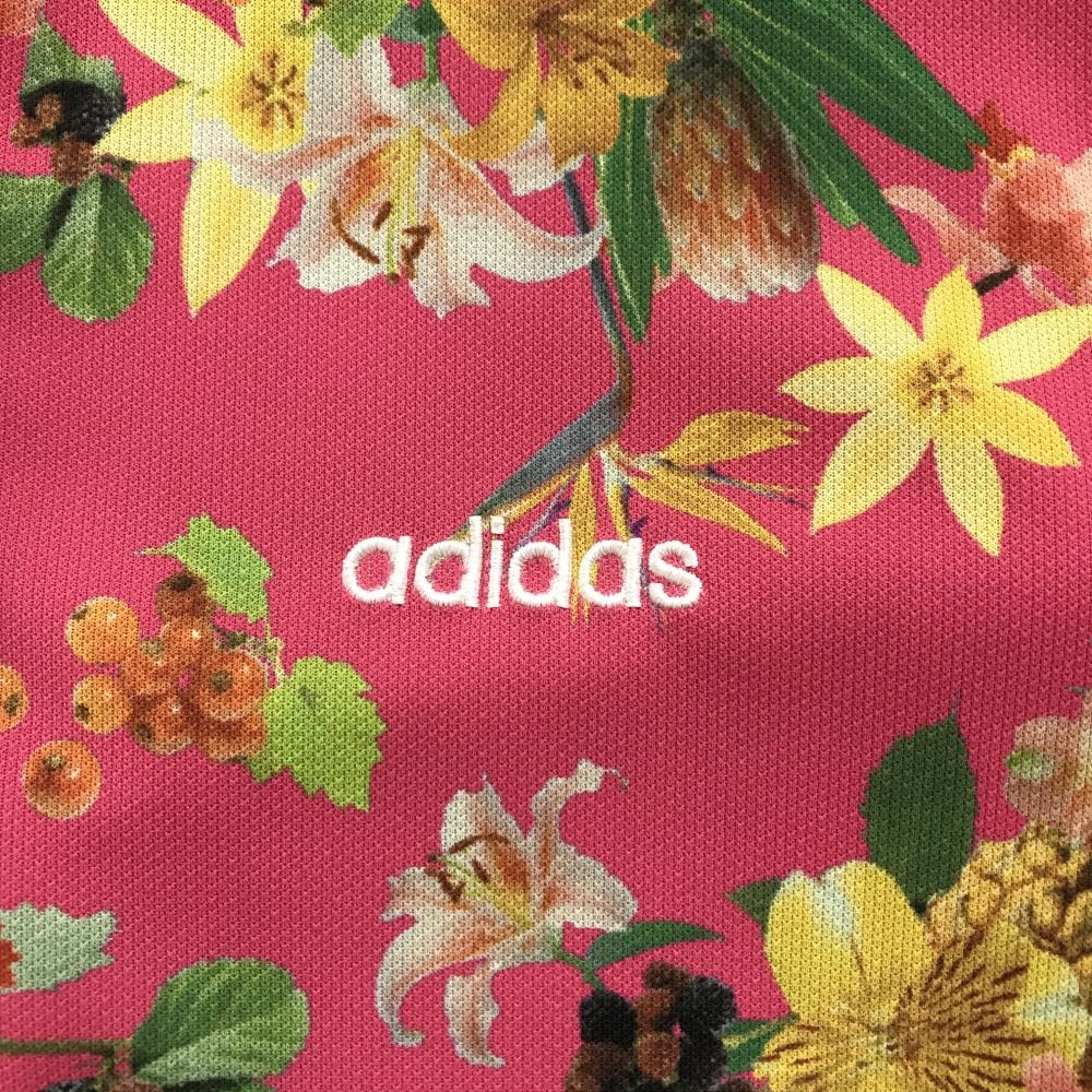 アディダス 半袖ポロシャツ ピンク×マルチカラー 花柄 ロゴ刺しゅう レディース M/M ゴルフウェア adidas