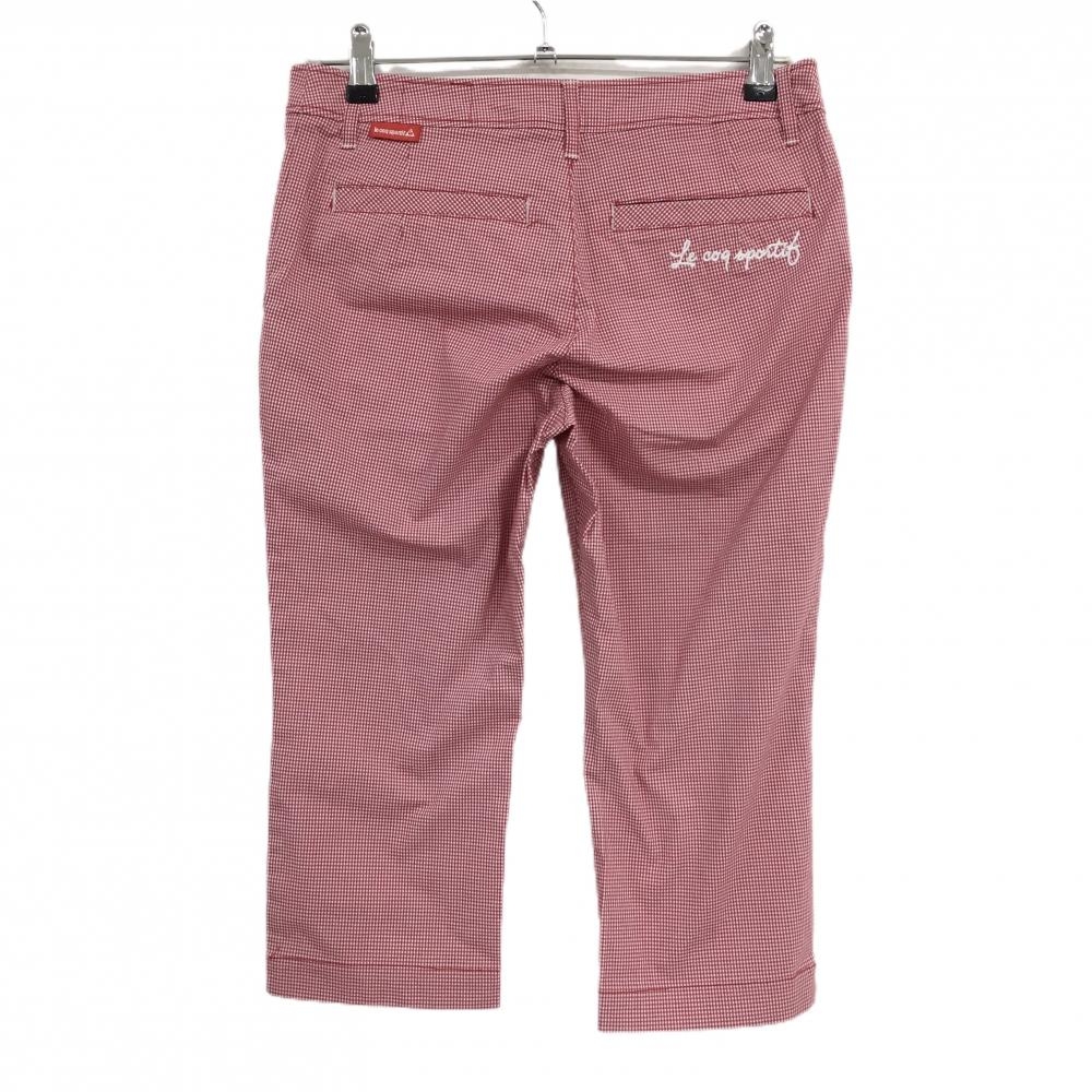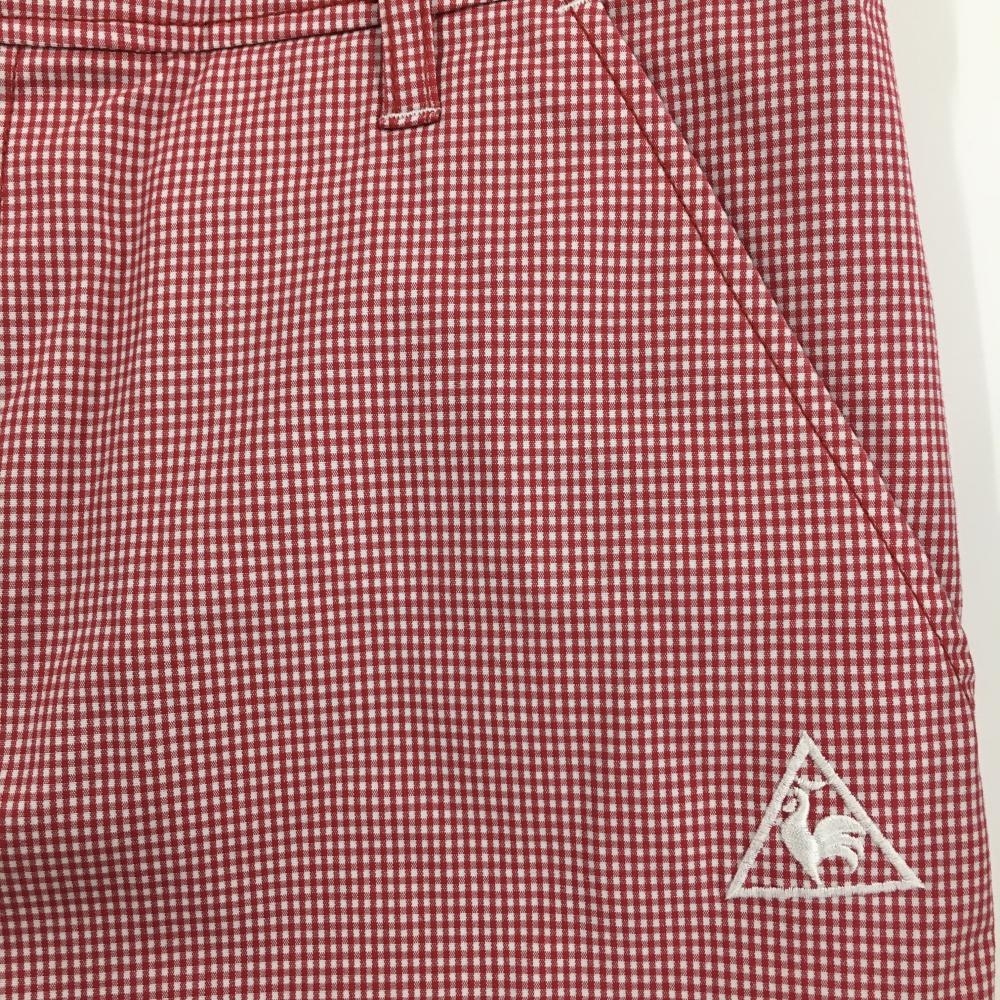 【超美品】ルコックゴルフ 七分丈パンツ 白×レッド ギンガムチェック ロゴ刺しゅう レディース 11 ゴルフウェア le coq sportif