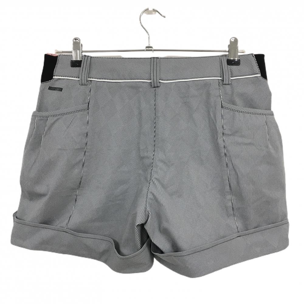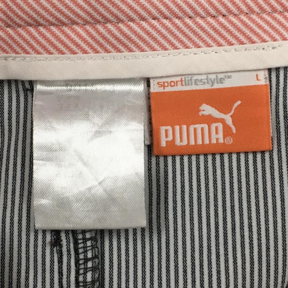【美品】プーマ ショートパンツ 白×ネイビー ストライプ 裾ロゴ レディース L ゴルフウェア PUMA
