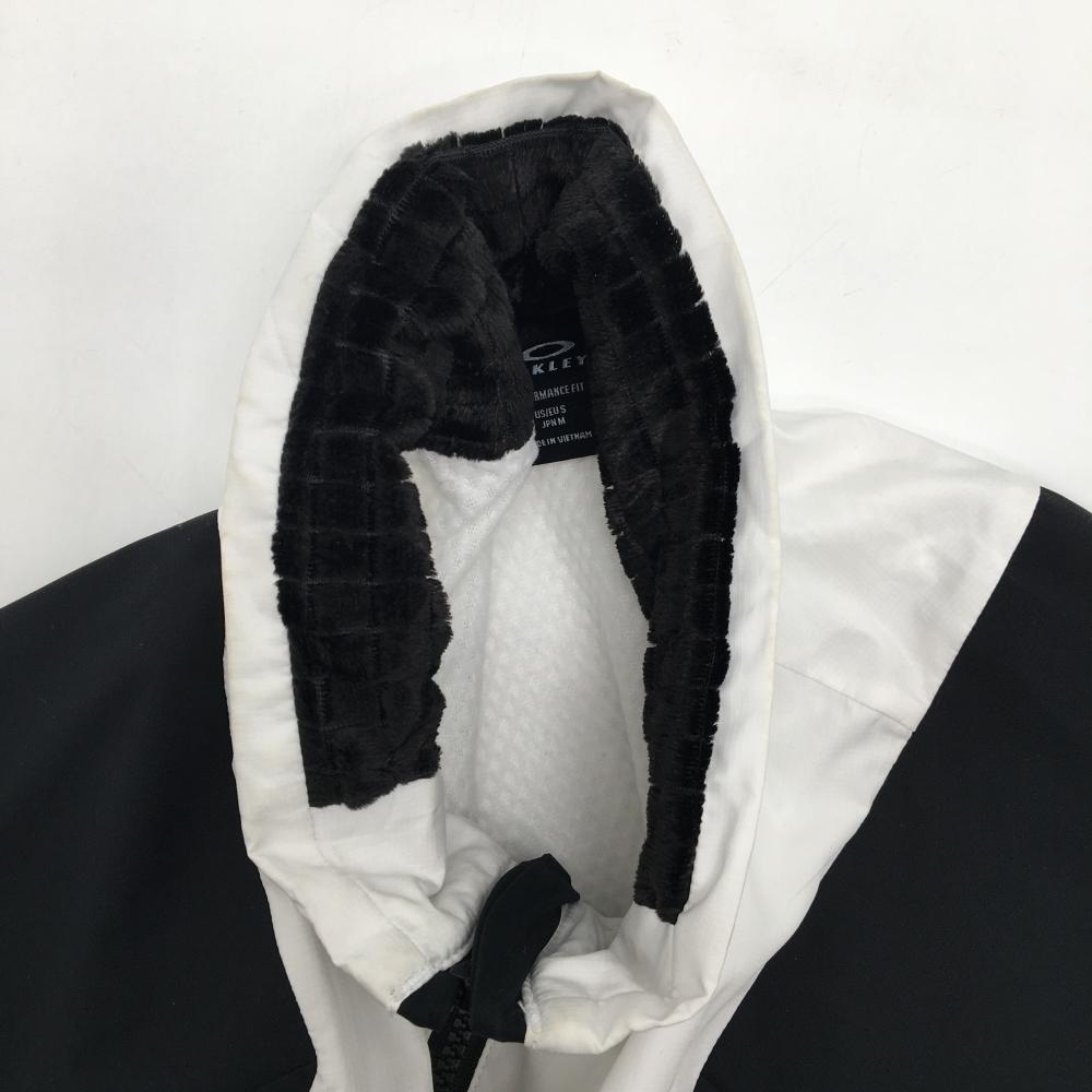 【美品】オークリー ジャケット 白×黒 バックロゴ ネック内側ベロア調 メンズ M ゴルフウェア Oakley