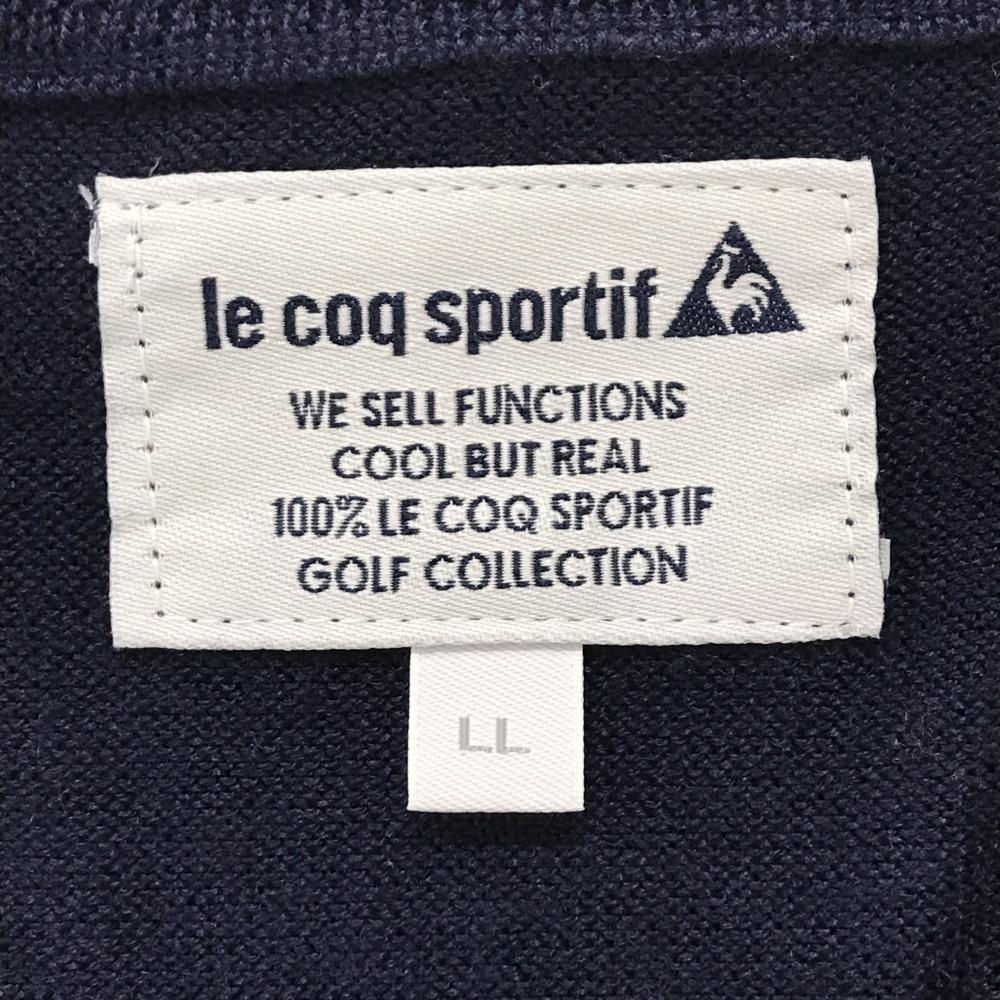 【美品】ルコックゴルフ ニットベスト ネイビー Vネック ロゴ刺しゅう レディース LL ゴルフウェア le coq sportif