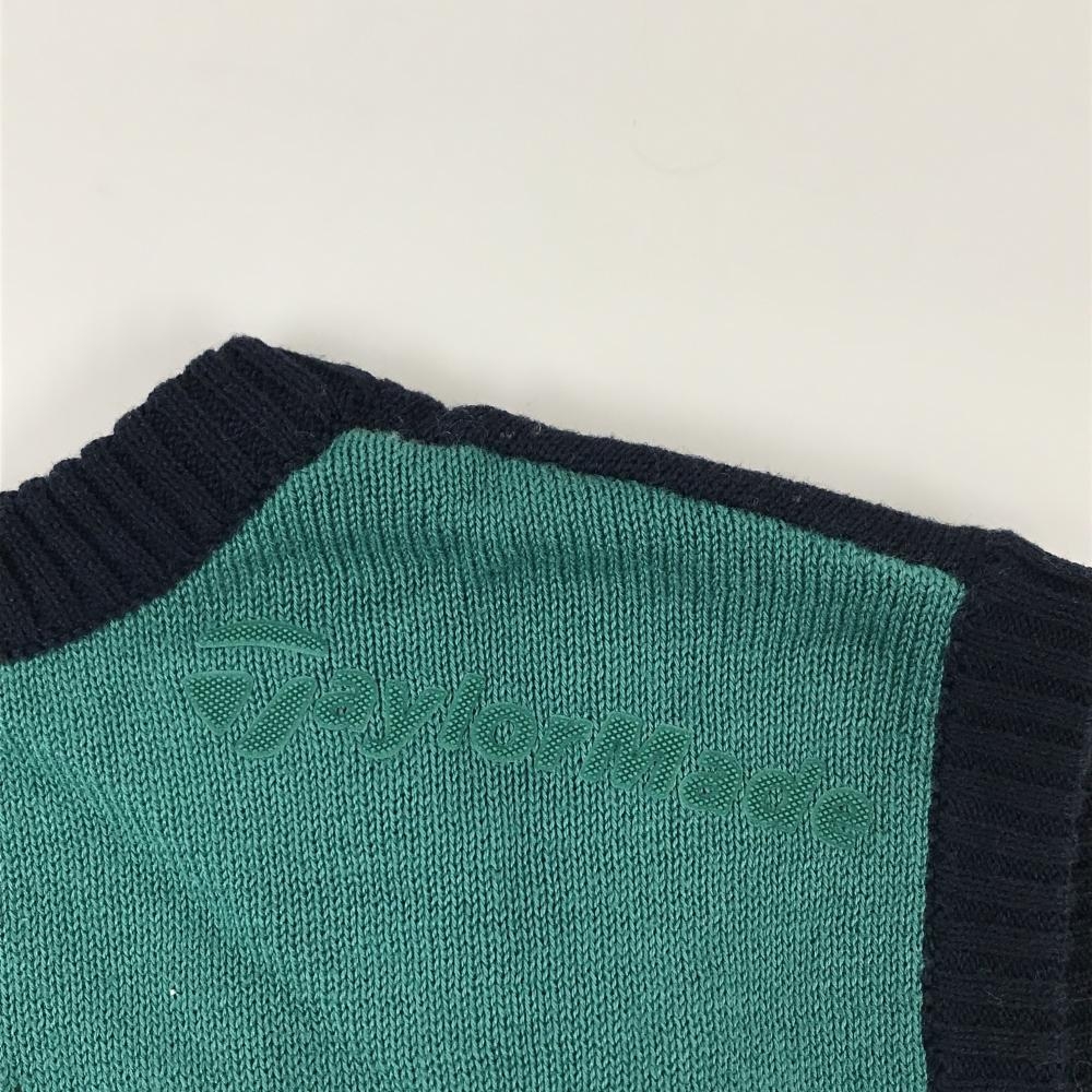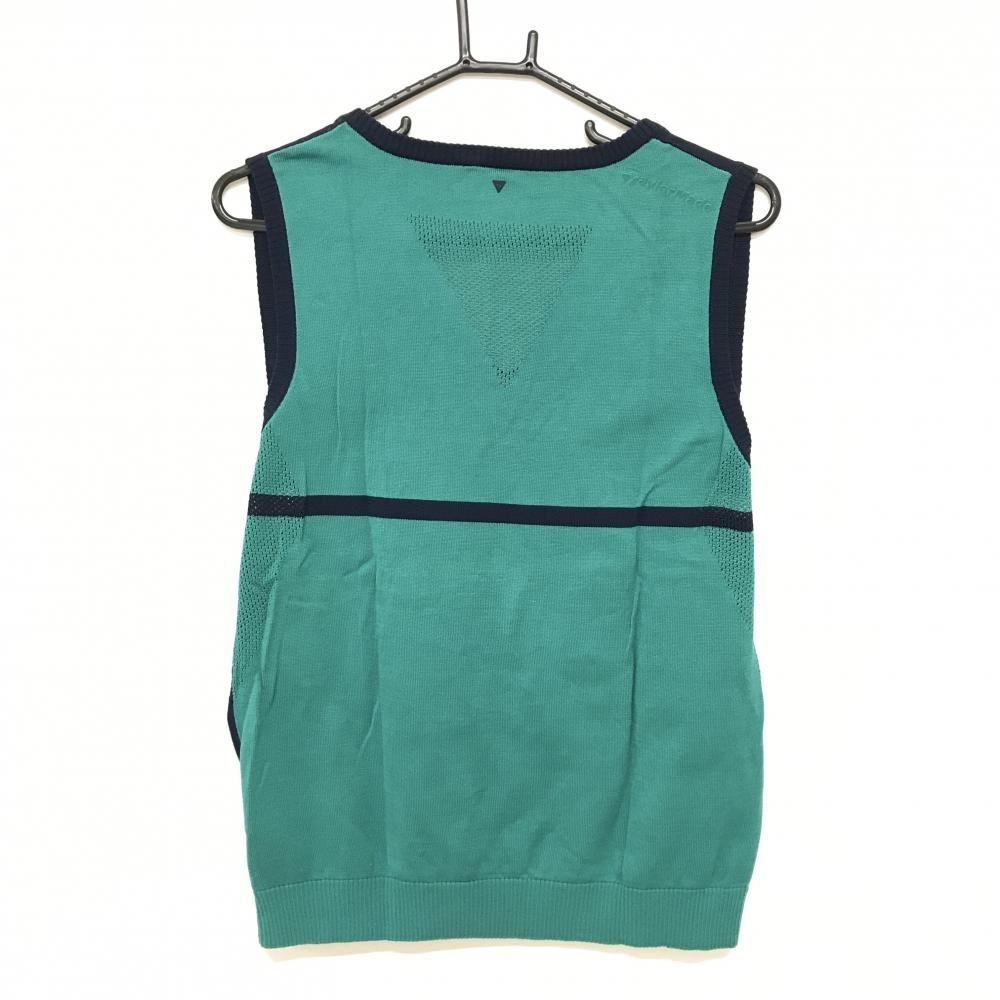 【美品】テーラーメイド ニットベスト ネイビー×白×グリーン Vネック 腹部ライン レディース L ゴルフウェア TaylorMade