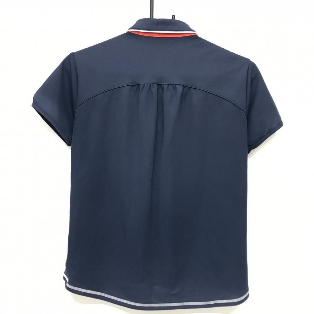マンシングウェア 半袖ポロシャツ ネイビー×レッド×白 胸ロゴ刺しゅう レディース L ゴルフウェア Munsingwear