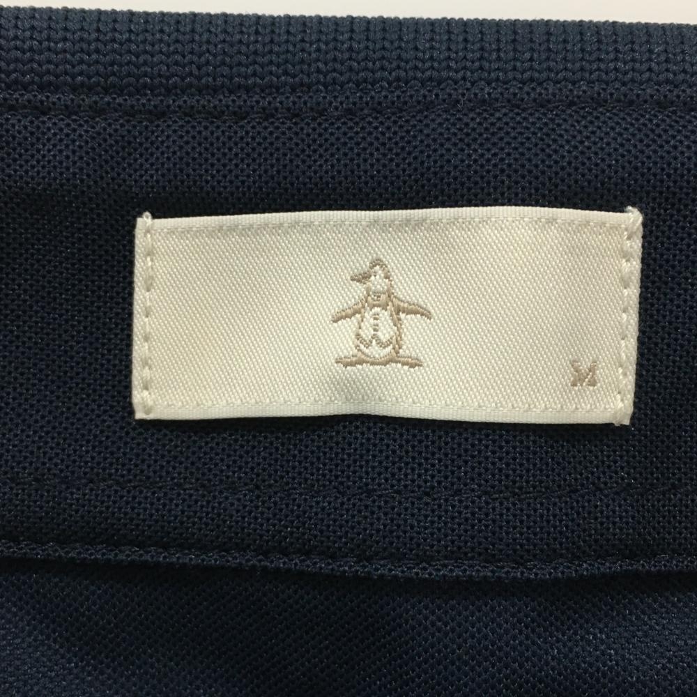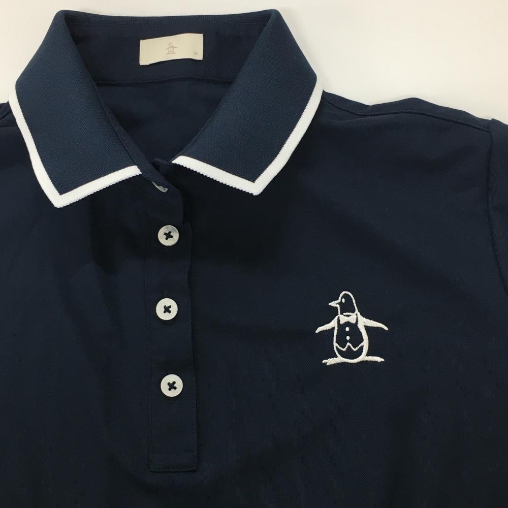【超美品】マンシングウェア 半袖ポロシャツ ネイビー×白 ペンギン刺しゅう 襟ライン レディース M ゴルフウェア Munsingwear