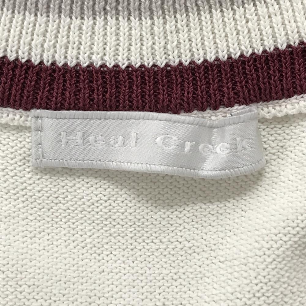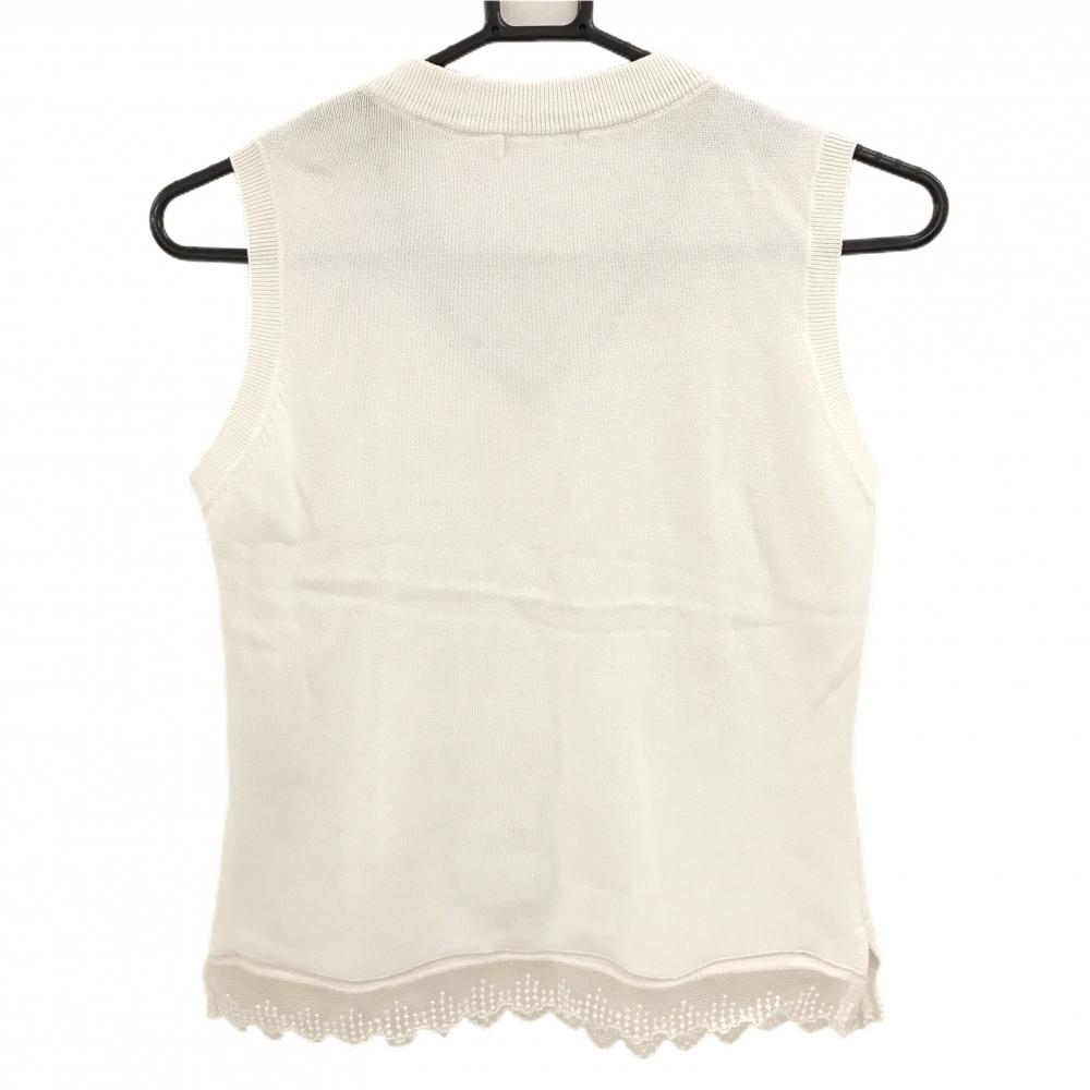 【超美品】ヒールクリーク ニットベスト 白 裾レース Vネック ロゴ刺しゅう レディース 40(M) ゴルフウェア Heal Creek