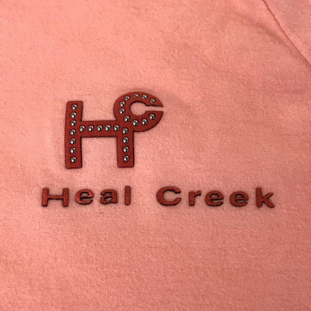 【超美品】ヒールクリーク 長袖ハイネックシャツ サーモンピンク 胸元ロゴ 微起毛 レディース 40(M) ゴルフウェア Heal Creek