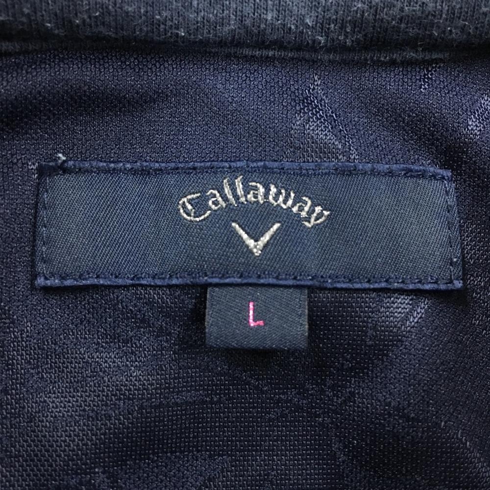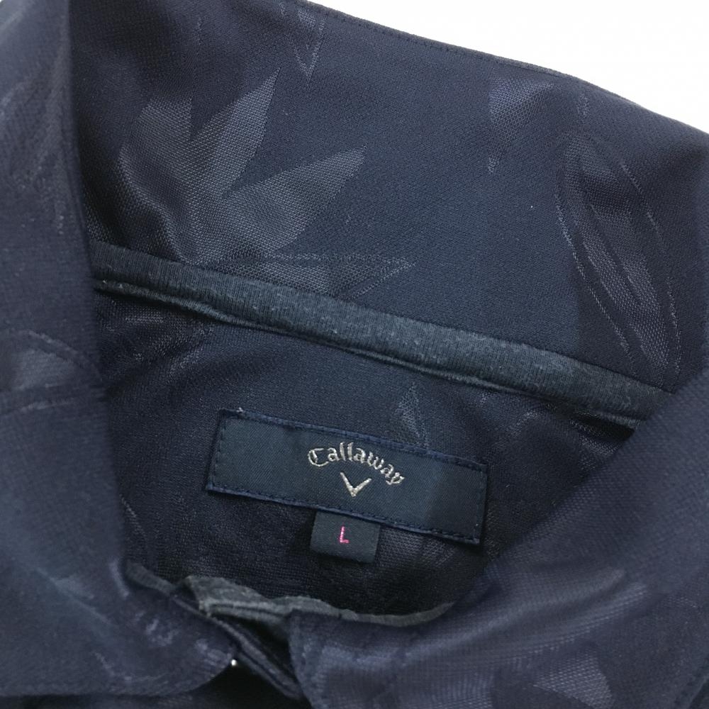 キャロウェイ ノースリーブポロシャツ ネイビー リーフ総柄地模様 フレンチスリーブ 袖フリル レディース L ゴルフウェア Callaway