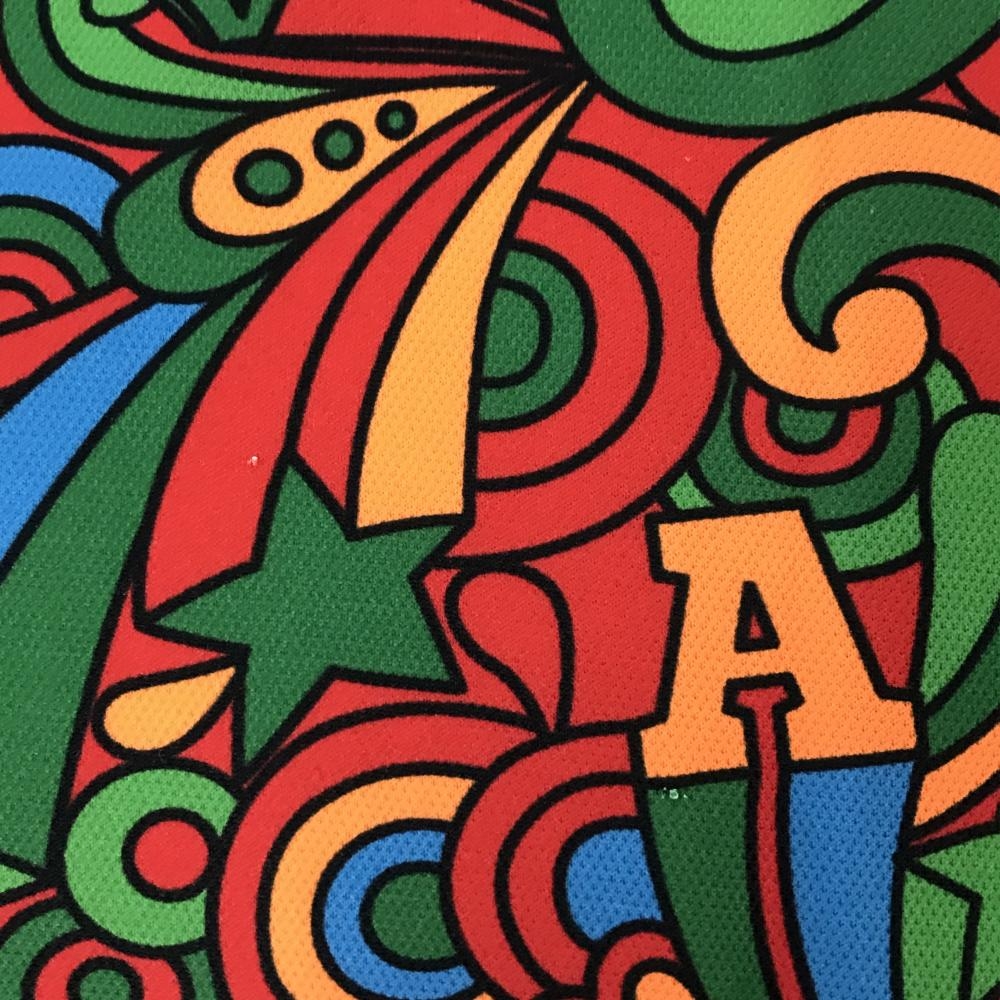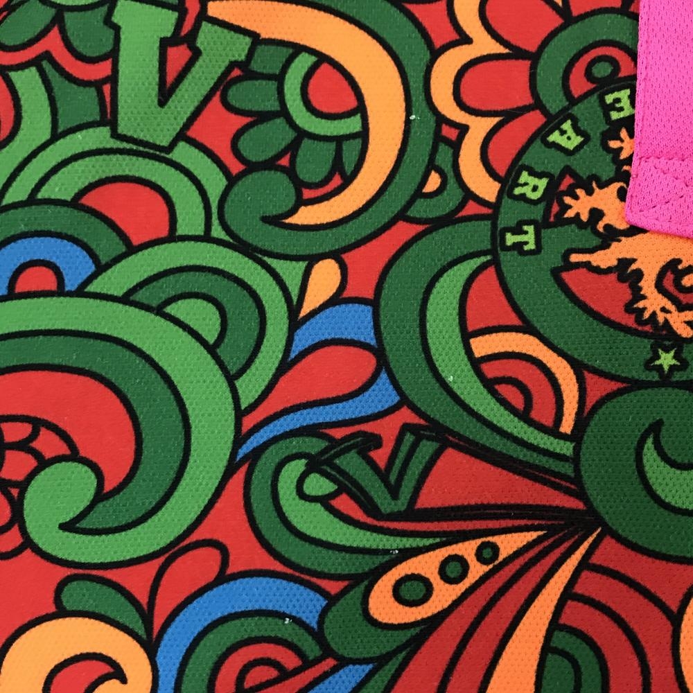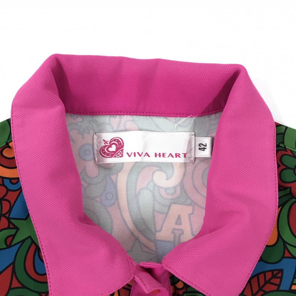 ビバハート 半袖ポロシャツ レッド×ピンク×グリーン 総柄 胸ロゴ レディース 42(L) ゴルフウェア VIVA HEART