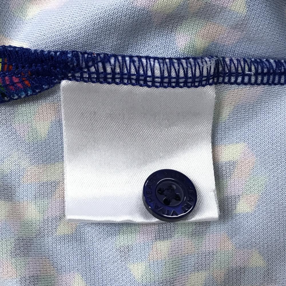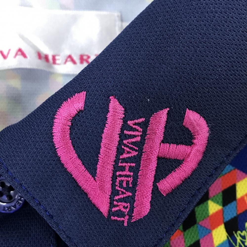 ビバハート 半袖ポロシャツ ネイビー×マルチカラー 総柄 ネックロゴ レディース 42(L) ゴルフウェア VIVA HEART