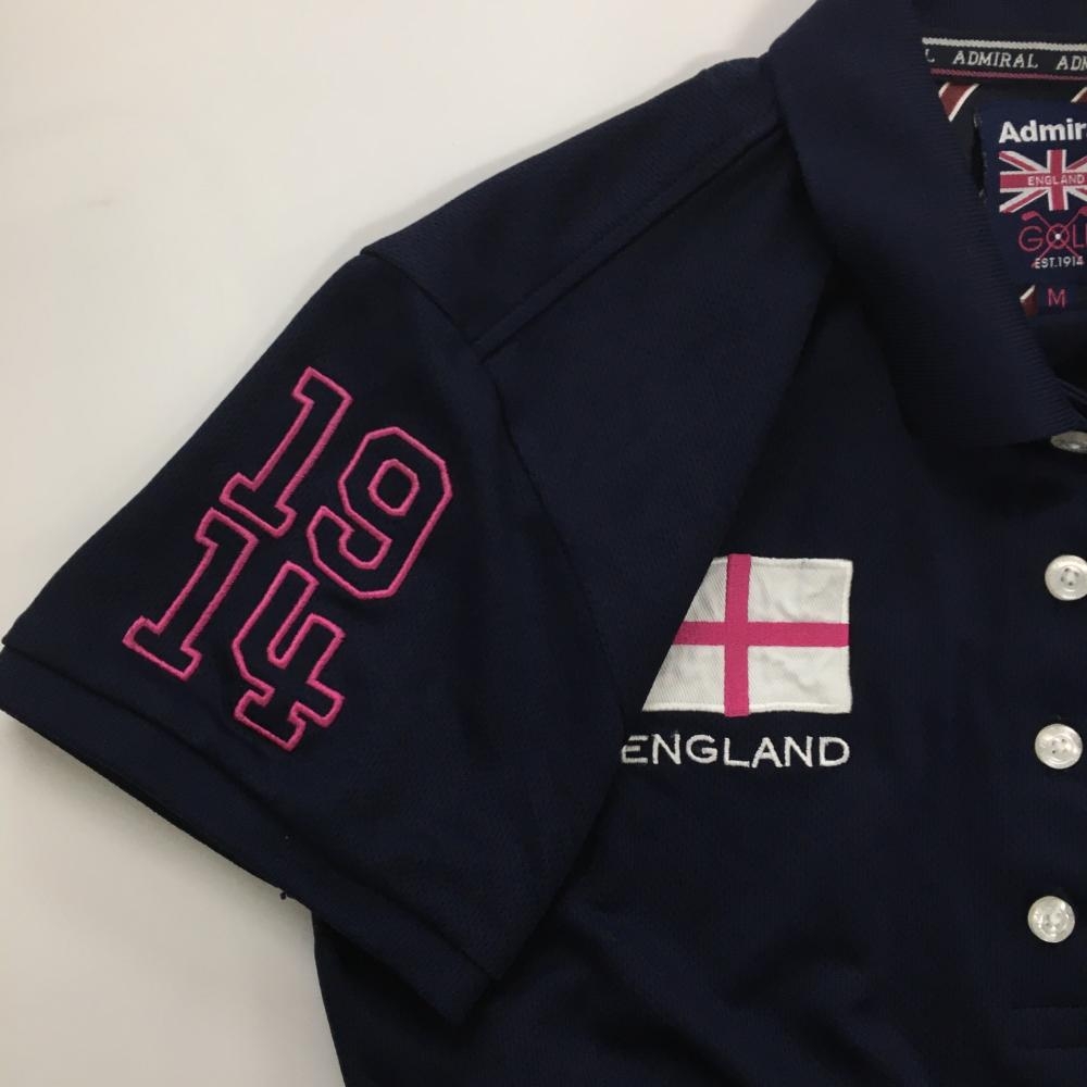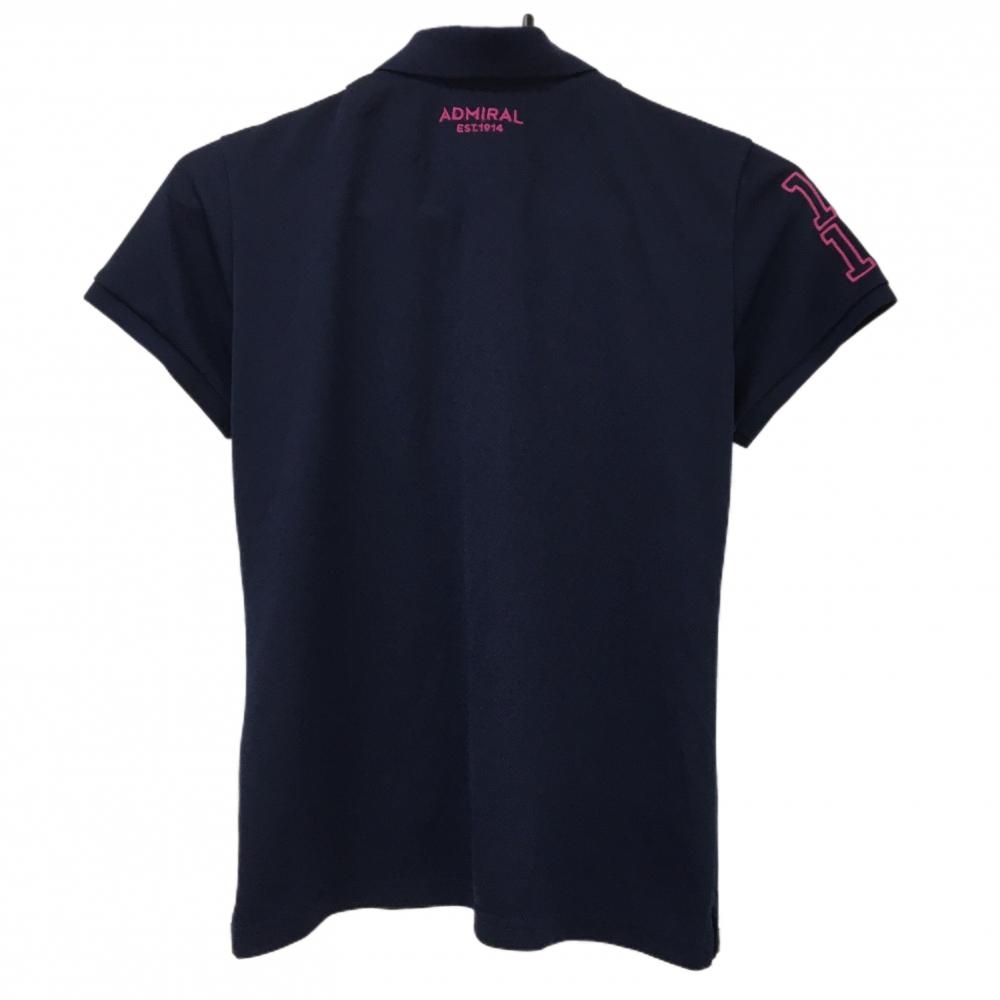 【美品】アドミラル 半袖ポロシャツ ネイビー×ピンク ロゴ刺しゅう レディース M ゴルフウェア Admiral