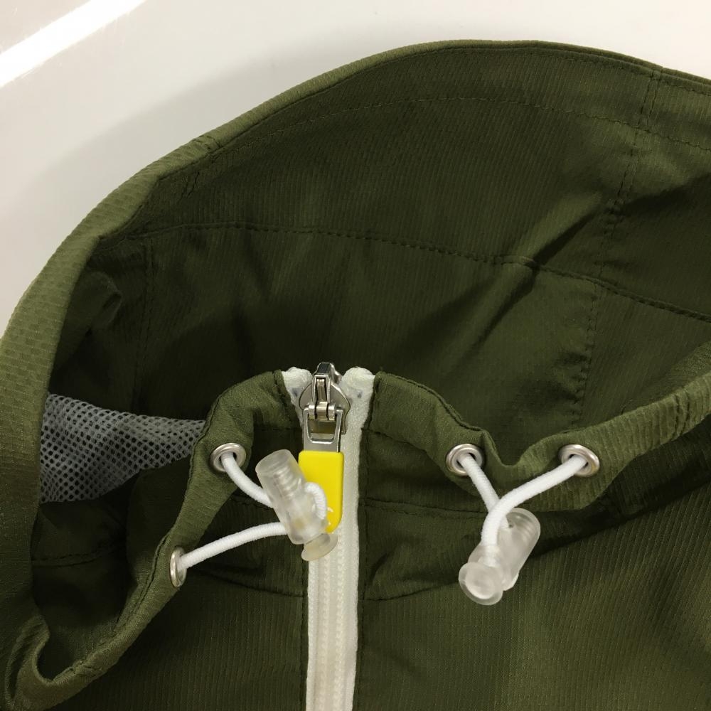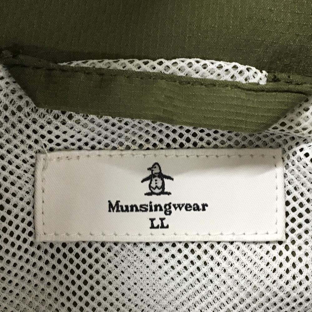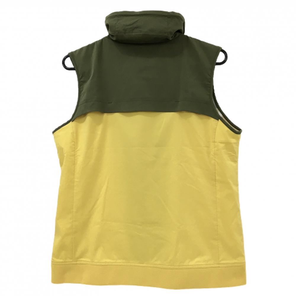 【超美品】マンシングウェア アウターベスト カーキ×イエロー ロゴプリント メッシュ裏地 レディース LL ゴルフウェア Munsingwear