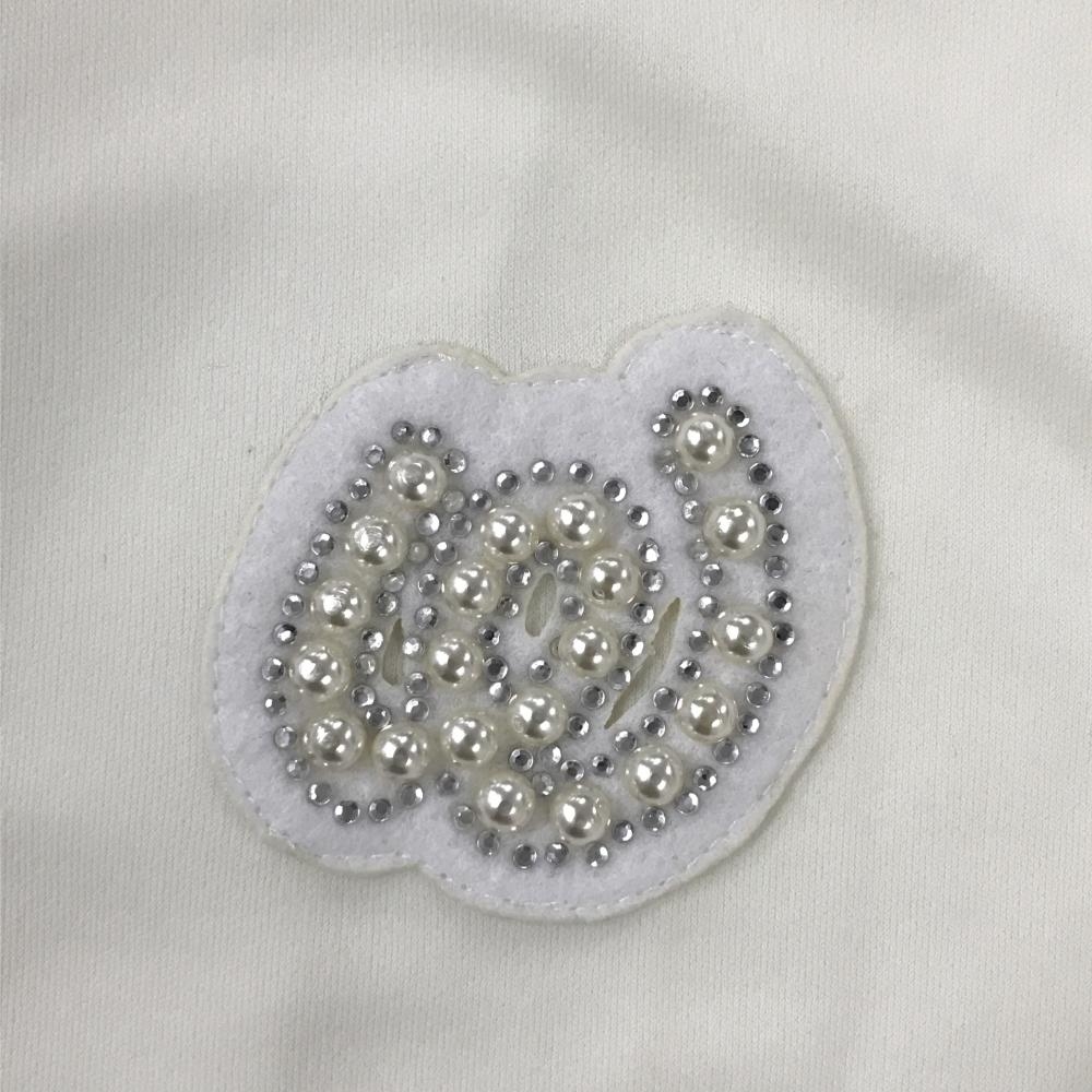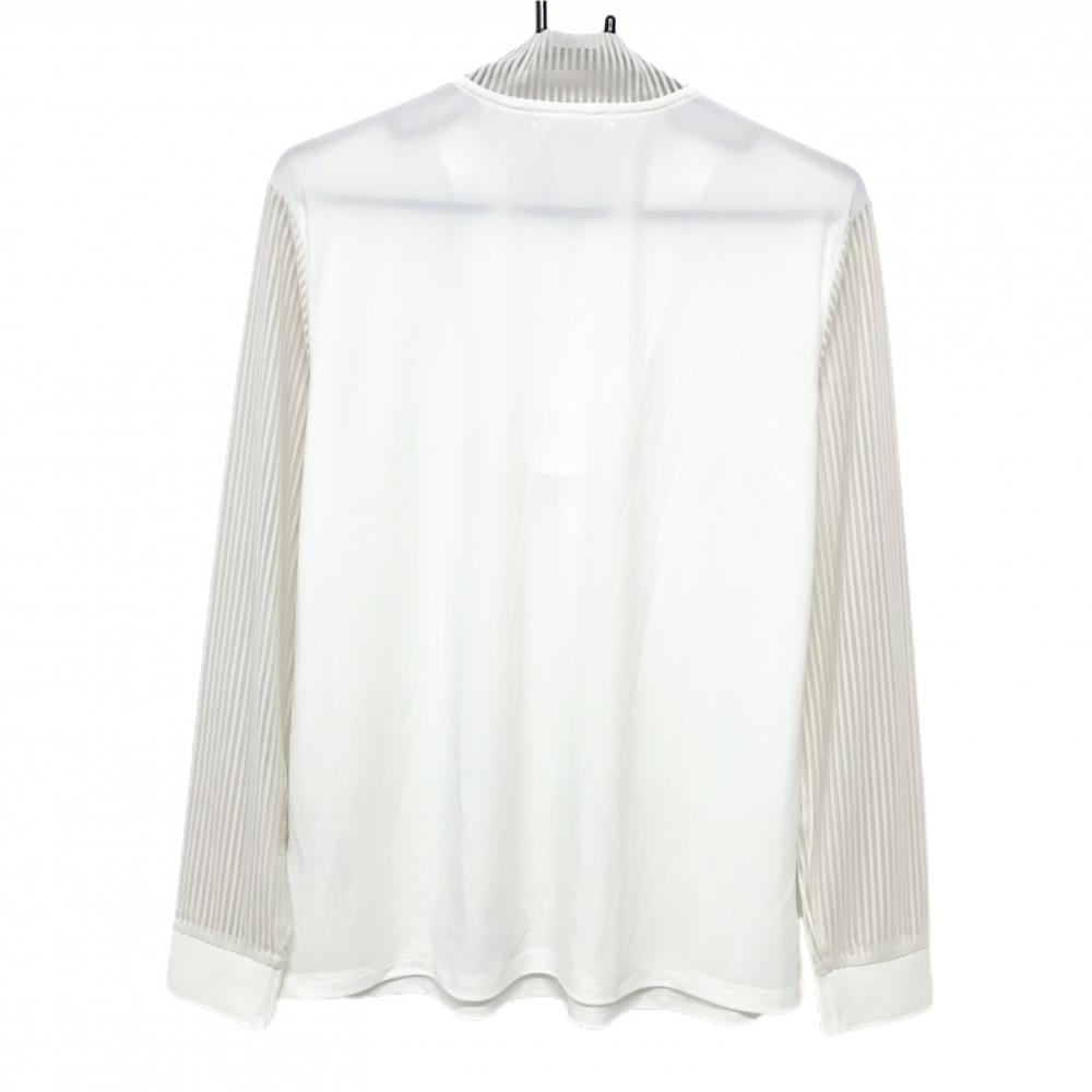 【新品】MUスポーツ 長袖ハイネックシャツ 白 ハーフジップ ネック・袖透け感ストライプ レディース 44(XL) ゴルフウェア M・U SPORTS