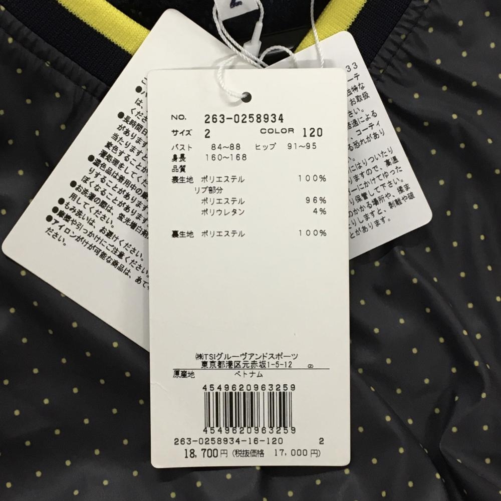 【新品】ジャックバニー アウターベスト ネイビー×イエロー ドット 裏地メッシュ レディース 2(L) ゴルフウェア Jack Bunny