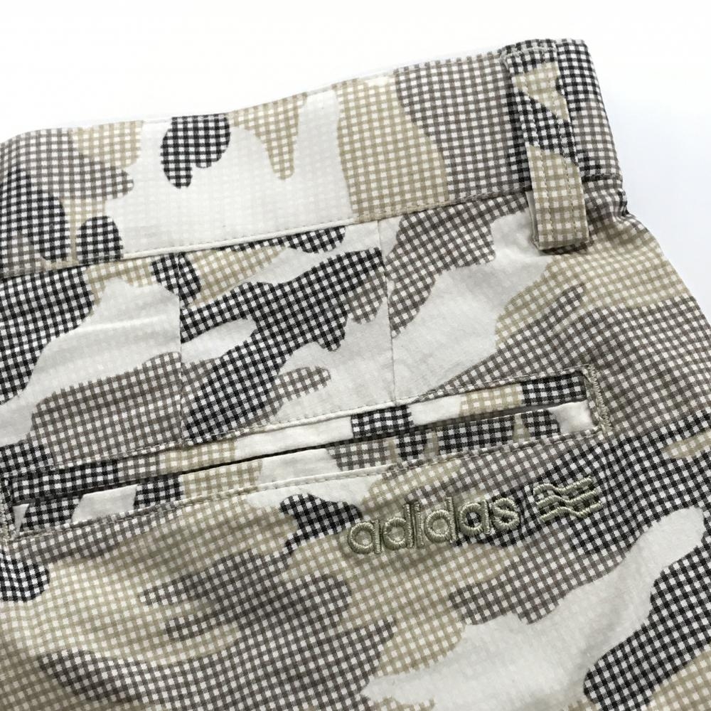 【美品】アディダス ハーフパンツ ベージュ系×ブラウン系 カモフラ 迷彩 ギンガムチェック ストレッチ メンズ M/M ゴルフウェア adidas