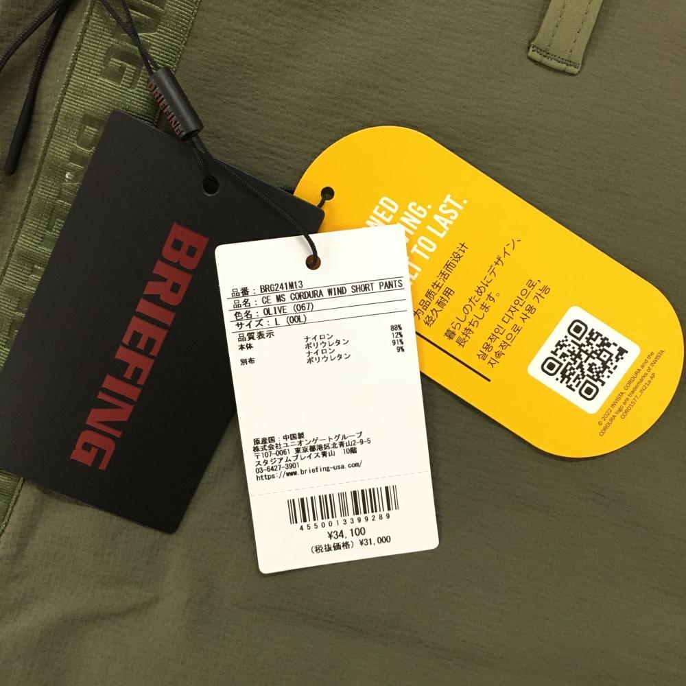【新品】ブリーフィング ハーフパンツ カーキ系 ポケット口ロゴ 地模様 ストレッチ メンズ L ゴルフウェア 2024年モデル BRIEFING